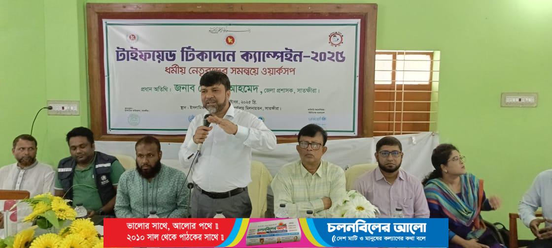 সাতক্ষীরায় ধর্মীয় নেতৃবৃন্দ অংশগ্রহণে টাইফয়েড টিকাদান ক্যাম্পেইন-২০২৫ বিষয়ক দিনব্যাপী পরামর্শমূলক কর্মশালা অনুষ্ঠিত হয়েছে। বুধবার (৮ অক্টোবর) সকালে ইসলামিক ফাউন্ডেশন সাতক্ষীরার আয়োজনে ও ইউনিসেফ বাংলাদেশ এর সহযোগিতায় ইসলামিক ফাউন্ডেশন সাতক্ষীরা কার্যালয়ের কনফারেন্স রুমে এ দিনব্যাপী পরামর্শমূলক কর্মশালা অনুষ্ঠিত হয়।