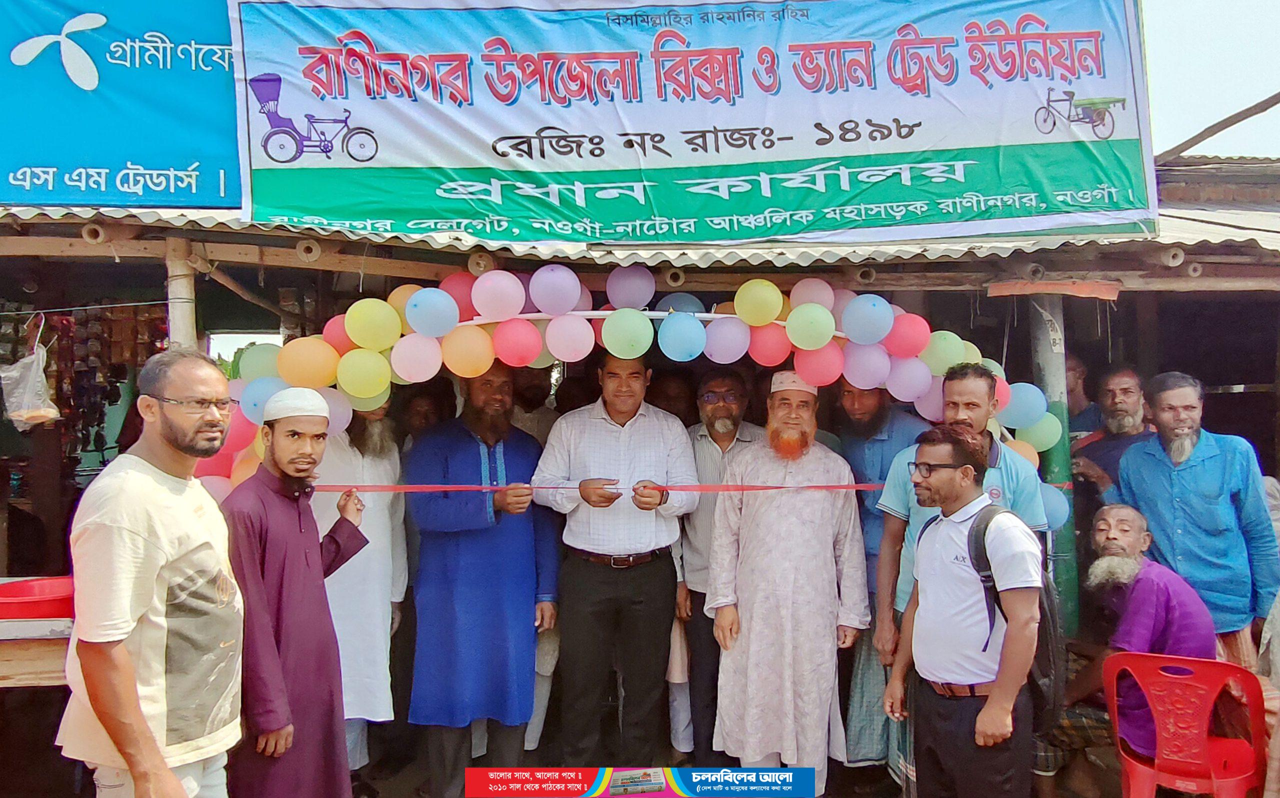 নওগাঁর রাণীনগরে ‘উপজেলা রিক্সা ও ভ্যান শ্রমিক ইউনিয়ন’র প্রধান কার্যালয়ের উদ্বোধন করা হয়েছে। শনিবার উপজেলা সদরের রেলগেট সংলগ্ন আঞ্চলিক মহাসড়কের পাশে একটি মার্কেটে রিক্সা ও ভ্যান শ্রমিক ইউনিয়ন কার্যালয়ের উদ্বোধন অনুষ্ঠানের আয়োজন করা হয়। অনুষ্ঠানে প্রধান অতিথি হিসেবে ফিতা কেটে কার্যালয়ের উদ্বোধন করে, রাণীনগর উপজেলা নির্বাহী কর্মকর্তা রাকিবুল হাসান।