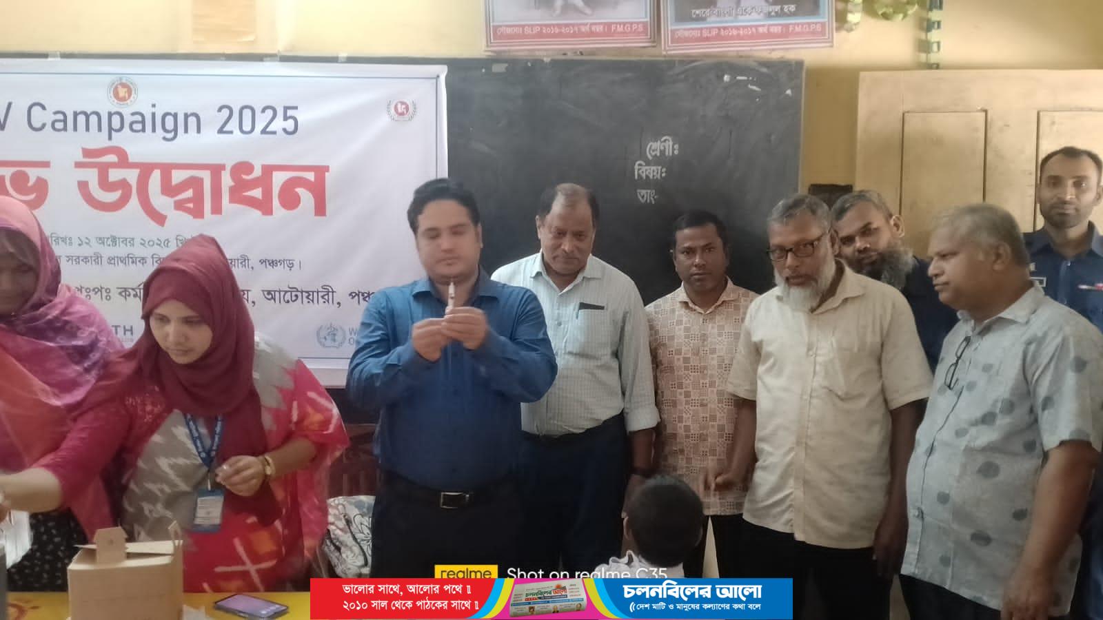 এ সময় ডা. হুমায়ুন কবীর বলেন, দেশে প্রথম বারের মতো শুরু হলো টাইফয়েড টিকাদান কর্মসূচি। এ কর্মসূচির আওতায় আটোয়ারী উপজেলায় ৯ মাস থেকে ১৫ বছরের কম বয়সী ৪২ হাজার ৮৯৩ জন শিশুকে সম্পুর্ণ বিনামূল্যে টিকা প্রদানের লক্ষ্যমাত্রা নির্ধারণ করা হয়েছে। টিকাদান চলবে আগামী ১৩ নভেম্বর পর্যন্ত। কর্মসূচি উদ্বোধনী দিনে টিকাদানের লক্ষ্যমাত্রা নির্ধারণ ছিল ১৫৪১ জন শিশু। এরমধ্যে ১৪১৫ জন শিশুকে প্রথম দিনে টিকা প্রদান করা হয়েছে (লক্ষ্যমাত্রা অর্জন ৯১.৮২%)। তিনি বলেন, টিসিভি টিকা পেতে জন্মনিবন্ধন সনদের তথ্য দিয়ে নির্ধারিত ওয়েবসাইটে নিবন্ধন করতে হবে। তবে কারো জন্মনিবন্ধন না করা থাকলে স্বাস্থ্য দপ্তরে যোগাযোগ করে ম্যানুয়ালি রেজিস্ট্রেশন করতে পারবে। টিকা পেতে জন্মসনদ থাকা বাধ্যতামূলক নয়। উপজেলা স্বাস্থ্য ও প. প. অফিসার বলেন, আটোয়ারীতে টাইফযেড টিকাদান ক্যাম্পেইন (টিসিভি) এর আওতায় প্রথম দুই সপ্তাহ (১২- ৩০ অক্টোবর) পর্যন্ত শিক্ষা প্রতিষ্ঠানে ও স্থায়ী টিকাদান কেন্দ্রে এবং পরবর্তী দুই সপ্তাহ ০১ – ১৩ নভেম্বর) কমিউনিটিতে নিয়মিত এবং স্থায়ী কেন্দ্রে টাইফয়েড টিকা প্রদান করা হবে। উপজেলার ৬ টি ইউনিয়নে মোট ৩১৭টি কেন্দ্রে টিকা প্রদান করা হবে। টিকাদান কর্মসূচিতে স্বাস্থ্য বিভাগের জনবল ছাড়াও ৯৭২জন স্বেচ্ছাসেবক কাজ করবে। এতে প্রথম সারির সুপারভাইজার ১৮ জন দায়িত্বে থাকবে।
