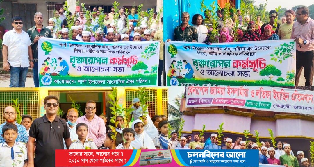 সাংবাদিকদের স্বার্থ সংশ্লিষ্ট বিভিন্ন বিষয়ের কল্যাণে কাজ করার লক্ষ্যে গঠিত হওয়া যশোর জেলার শার্শা উপজেলার সমগ্র সাংবাদিকদের সমন্বয়ে গঠিত বৃহৎ সংগঠন “শার্শা উপজেলা সাংবাদিক ঐক্য পরিষদ” এর পক্ষ থেকে আজ রবিবার(১২ অক্টোবর) দিনব্যাপি বেনাপোল পৌর এলাকার বিভিন্ন শিক্ষা প্রতিষ্ঠানে মোট ২০০ বিভিন্ন প্রজাতীর গাছের চারা বিতরণ করা হয়।