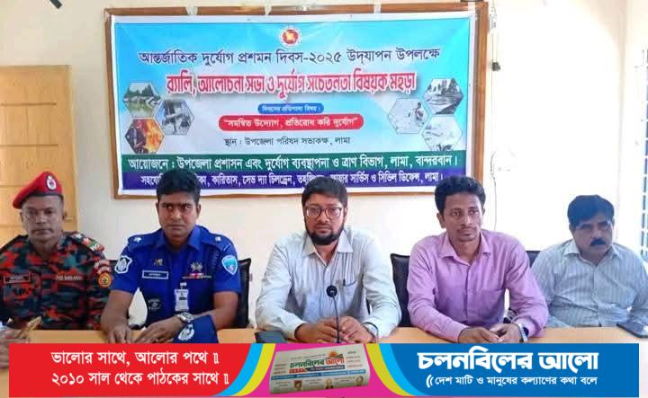“সমন্বিত উদ্যোগে প্রতিরোধ করি দুর্যোগ” — এই প্রতিপাদ্যকে সামনে রেখে সারাদেশের মতো বান্দরবানের লামা উপজেলাতেও যথাযোগ্য মর্যাদায় পালিত হয়েছে আন্তর্জাতিক দুর্যোগ প্রশমন দিবস–২০২৫ ইং,।