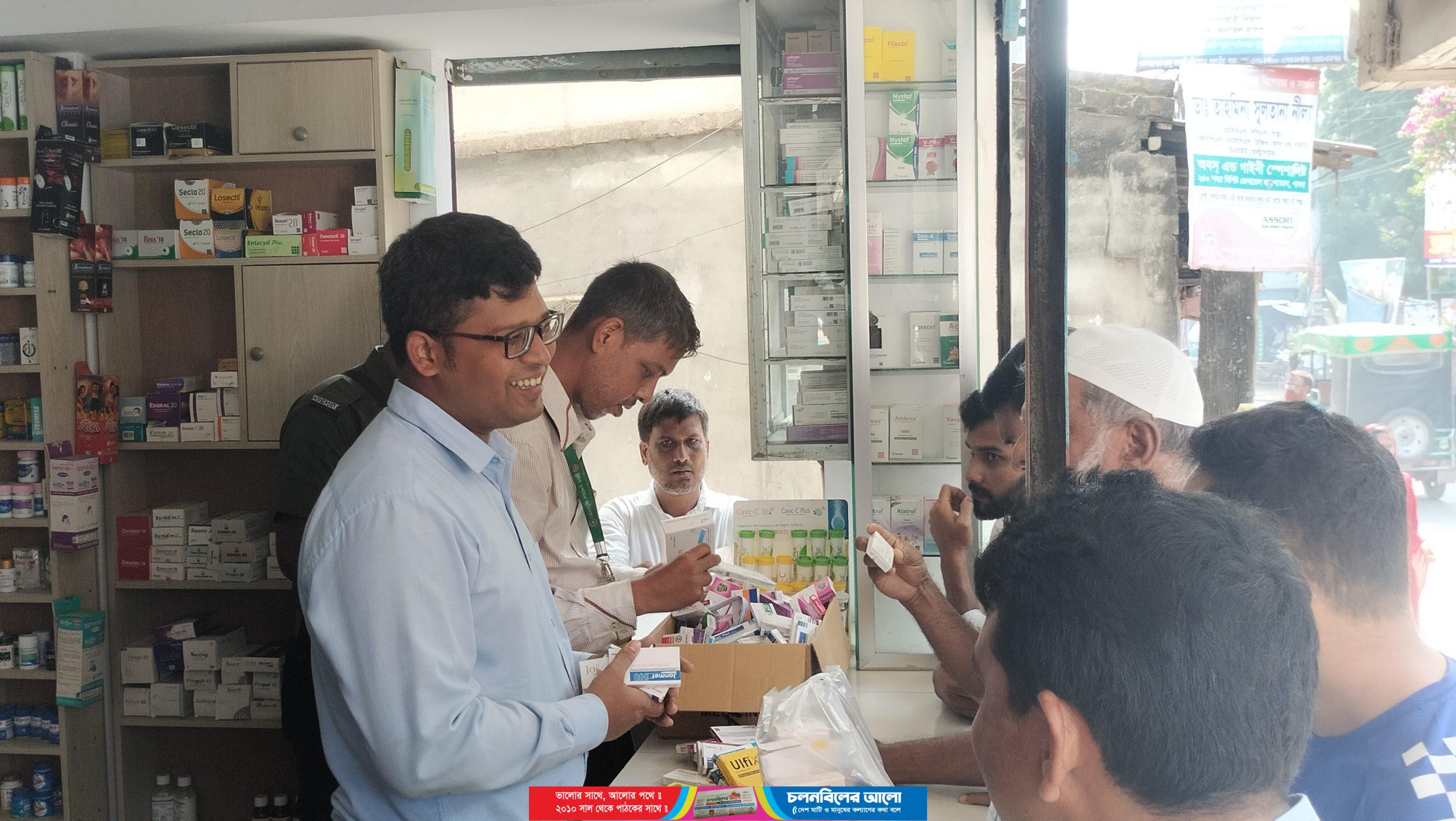 পুরাতন বাজার এলাকার মতিন ফার্মেসী ও ইসলাম ফার্মেসিকে তিন হাজার টাকা করে মোট ৬ হাজার টাকা জরিমানা আদায় করা হয়। মেয়াদোত্তীর্ণ ঔষধ ও স্যাম্পল রাখার দায়ে এ জরিমানা করে ভ্রাম্যমাণ আদালত।