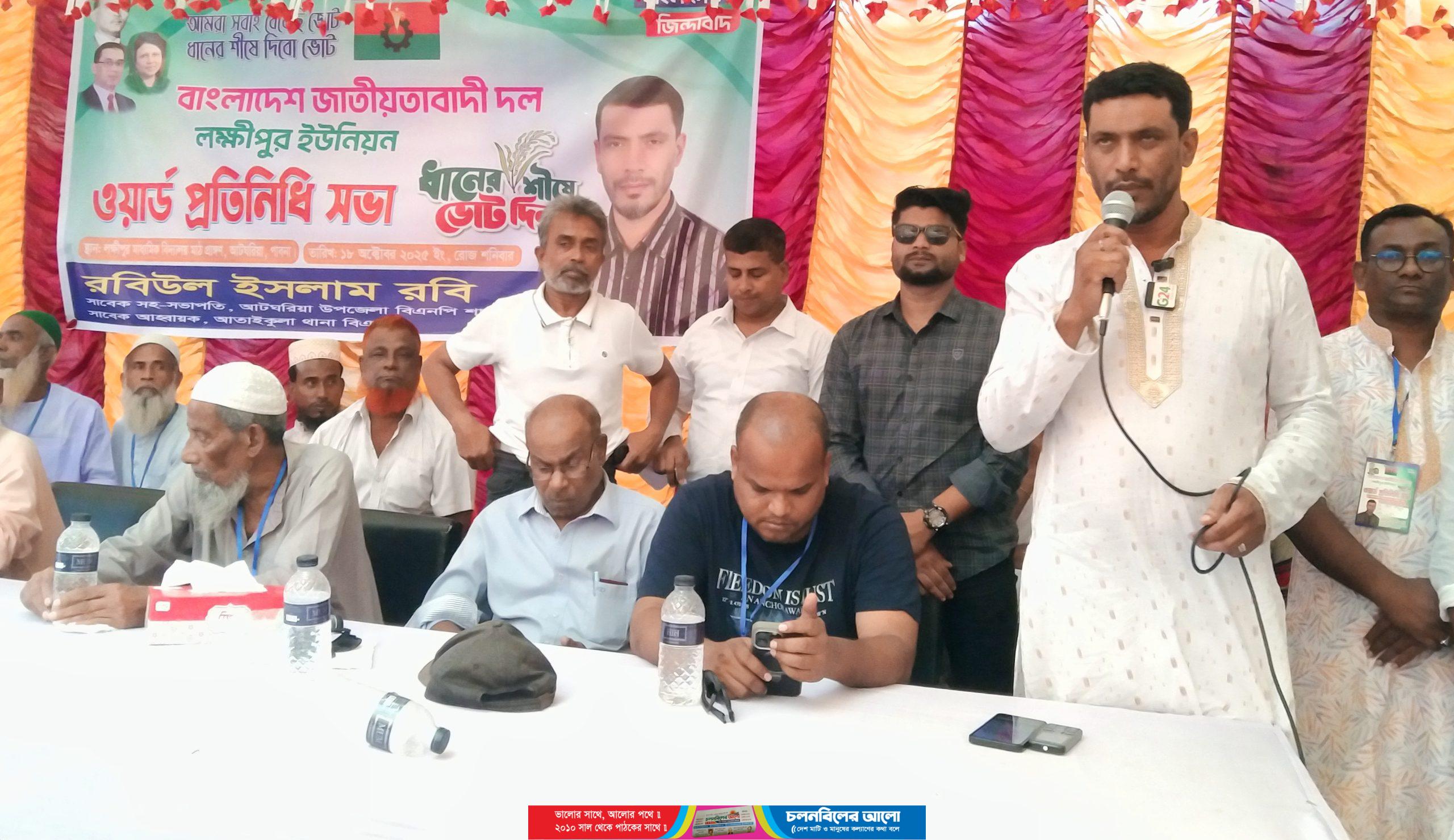 আমরা সবাই বেঁধেছি জোট ধানের শীষে দিবো ভোট এই স্লোগানকে সামনে রেখে আটঘরিয়া উপজেলা বিএনপির সাবেক সহসভাপতি রবিউল ইসলাম রবি’র নেতৃত্বে বাংলাদেশ জাতীয়তাবাদী দল লক্ষীপুর ইউনিয়ন ও ওয়ার্ড বিএনপির প্রতিনিধি সভা অনুষ্ঠিত হয়েছে।