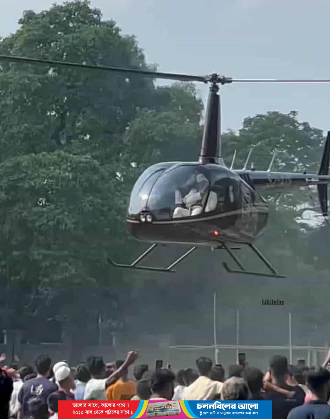 এদিকে হেলিকপ্টারটি সরকারি কলেজ মাঠে অবতরণ করতেই মুহূর্তে ভিড় জমে যায়। মাঠ যেন উৎসবস্থলে পরিণত হয়। শিশু, বৃদ্ধ, নারী সবার হাতে মোবাইল, কেউ ভিডিও করছেন, কেউ সেলফি তুলছেন।