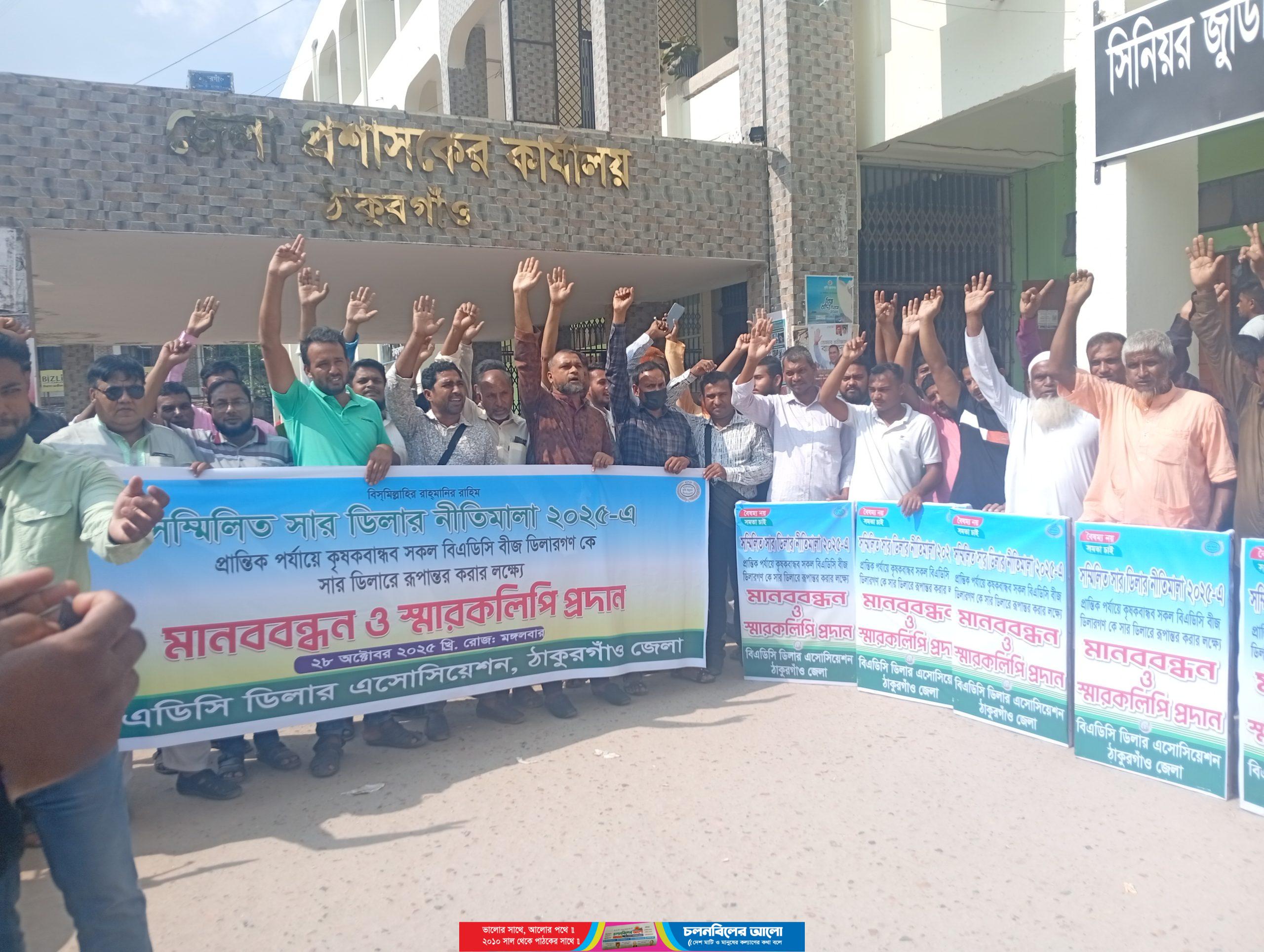 ঠাকুরগাঁওয়ে সম্মিলিত সার ডিলার নীতিমালা-২০২৫ অনুযায়ী প্রান্তিক পর্যায়ের কৃষক বান্ধব সকল বিএডিসি বীজ ডিলারদের সার ডিলারে রূপান্তরের দাবিতে মানববন্ধন অনুষ্ঠিত হয়েছে।