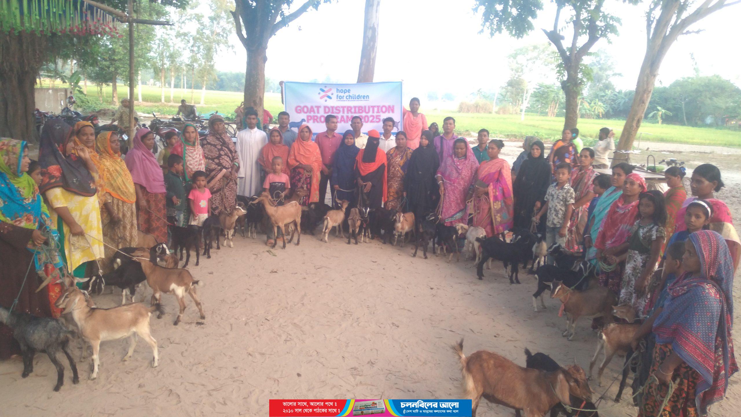বিলিভার্স ইস্টার্ন চার্চ কর্তৃক পরিচালিত দিনাজপুরের বীরগঞ্জ দেবীপুরে “হোপ ফর চিলড্রেন” প্রজেক্টের উদ্যোগে ৪২ জন রেজিস্টার্ড শিশুর পরিবারের মধ্যে ৮৪টি ছাগল বিতরণ করা হয়েছে। প্রতিটি পরিবারের হাতে দুটি করে ছাগল তুলে দেওয়া হয়।