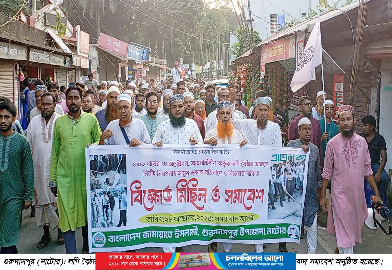 স্বৈরাচার আওয়ামীলীগের লগি বৈঠার তান্ডবে নিরীহ ও নিরপরাধ মানুষ হত্যাকারীদের বিচারের দাবিতে নাটোরের গুরুদাসপুরে বিক্ষোভ মিছিল, প্রতিবাদ সমাবেশ অনুষ্ঠিত হয়েছে।