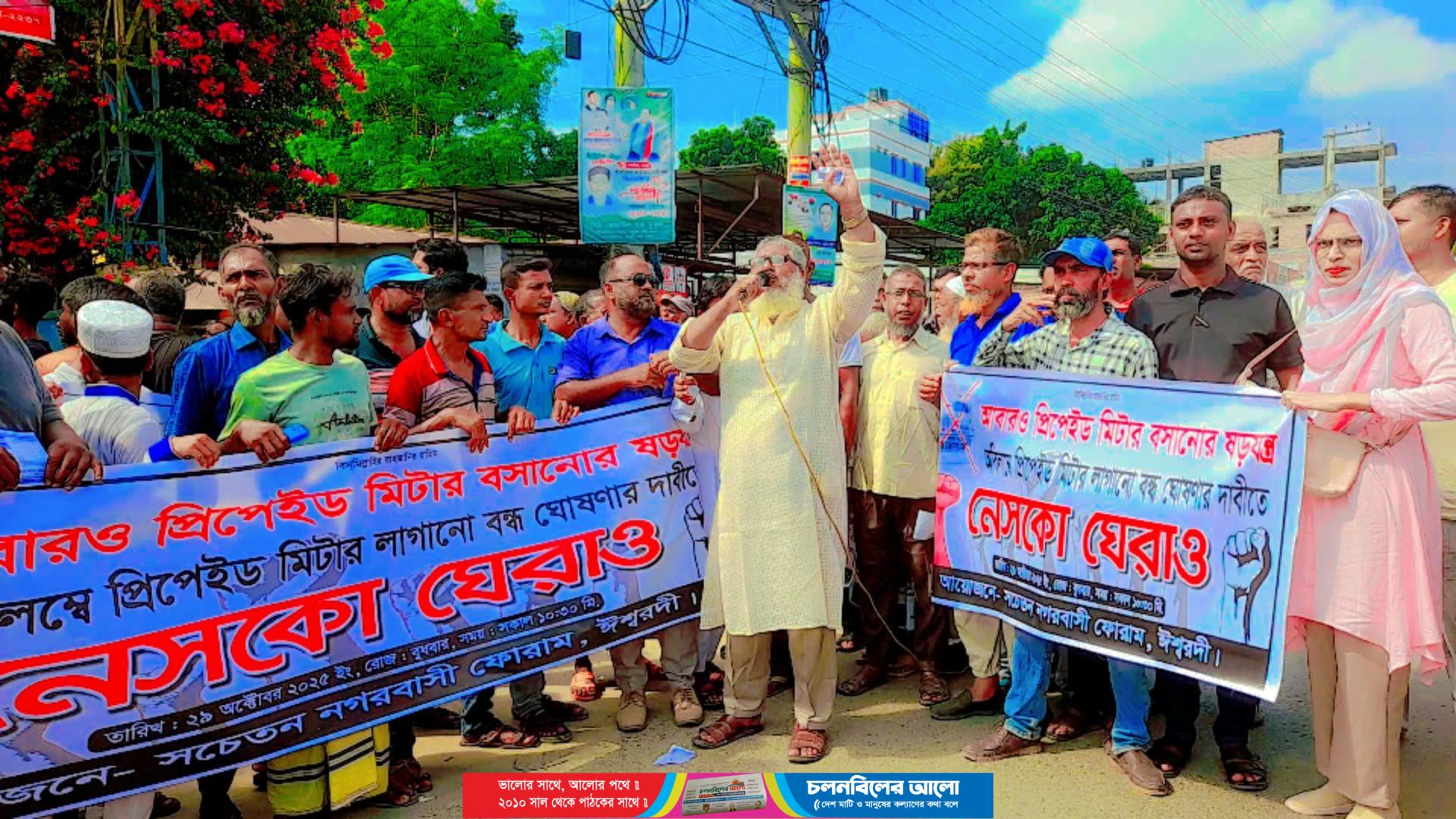 পাবনার ঈশ্বরদীতে বসতবাড়ি-ব্যবসা প্রতিষ্ঠান, ক্লিনিক, ডায়াগোসেন্টিক সেন্টার, শিক্ষা প্রতিষ্ঠানে প্রি-পেইড মিটার বসানোর প্রতিবাদে ঈশ্বরদী-পাবনা মহাসড়ক অবরোধ ও নর্দান ইলেকট্রিসিটি সাপ্লাই কোম্পানি লিমিটেড (নেসকো) ভবন ঘেরাও করে প্রতিবাদ বিক্ষোভ, ভাংচুর করেছে নেসকোর ভুক্তভোগী গ্রাহকরা। আবাসিক প্রকৌশলী (বিক্রয় ও বিতরন) মোঃ আব্দুন নূরকে আগামী দুই দিনের মধ্যে স্বেচ্ছায় বদলী হয়ে অন্যত্র চলে যাওয়ার সময় বেঁধে দেন। এ বিক্ষোভ সমাবেশে কয়েকশত নারী-পুরুষ অংশ নেন। বুধবার (২৯ অক্টোবর) সকাল ১০টায় ঈশ্বরদী সচেতন নগরবাসী ফোরামের উদ্যোগে পৌর শহরের আলোবাগ মোড়ে নেসকো ভবনের সামনের সড়কে এ বিক্ষোভ কর্মসূচির আয়োজন করা হয়। এতে দু’ঘন্টা ধরে চলা বিক্ষোভের সময় সকল প্রকার যান চলাচল বন্ধ হয়ে তিন কিলোমিটার এলাকাজুড়ে তীব্র যানজটের সৃষ্টি হয়। এসময় নানারকম স্লোগান দিয়ে নেসকোর প্রি-পেইড মিটার স্থাপন কার্যক্রম বন্ধের দাবি জানানো হয়। কিন্তু বিক্ষোভকারীদের পক্ষ থেকে নেসকোর (বিক্রয় ও বিতরন) নির্বাহী প্রকৌশলী মোঃ আব্দুন নূরের নিকট সিদ্ধান্ত জানতে চাওয়া হয় কিন্তু বিক্ষোভকারীদের আহবানে নির্বাহী প্রকৌশলী কোনরকম সাড়া না দেওয়ায় বিক্ষোভকারিরা নির্বাহী প্রকৌশলীর কার্যালয়ের ভিতর মিছিল নিয়ে প্রবেশ করে। একপর্যায়ে বিক্ষোভকারীরা প্রকৌশলীর কক্ষে দরজা ধাক্কা দিয়ে প্রবেশ করে ভাংচুরসহ প্রকৌশলীর সঙ্গে বাকবিতন্ডা শুরু করে। বিক্ষোভকারীদের তোপের মুখে অবস্থার বেগতিক দেখে অবশেষে নির্বাহী প্রকেীশলী আব্দুন নূর লিখিত ও মৌখিকভাবে প্রি-পেইড মিটার বসানো স্থায়ীভাবে বন্ধ ঘোষণা করেন। একই সঙ্গে ঈশ্বরদীতে ইতিপূর্বে লাগানো সকল প্রি-পেইড মিটার নেসকো নিজ দায়িত্বে খুলে এনে পুর্বের মত মাসিক বিল সিস্টেমের মিটার লাগিয়ে দেওয়ার প্রুতিশ্রুতি প্রদান করেন। বিক্ষোভকারীদের মধ্যে জাতীয় নাগরিক পার্টির উপজেলা সংগঠক সুলতান মাহমুদ খান বিদ্যুৎ অভিযোগ করে জানান, নেসকো ঈশ্বরদীর আবাসিক প্রকৌশলী (বিক্রয় ও বিতরন) মোঃ আব্দুন নূর চমর দূর্নীতিবাজ লোক। নতুন মিটার সংযোগে মোটা অঙ্কের ঘুষ ছাড়া অনুমোদন দেন না। মালামাল ক্রয়ে সরকারী অর্থ আত্মসাত করেন। অভিযোগকারী গ্রাহকদের সঙ্গে অসৎ আচরণ করেন। গালাগালি করেন। সেবাগ্রহিতাদের অহেতুক হয়রানি করেন। বিদ্যুৎ আরও জানান, বেশ কিছুদিন যাবত ঈশ্বরদীতে প্রি-পেইড মিটার না লাগানোর জন্য এক্সসিইএন আব্দুর নুরের নিকট লিখিত ও মৌখিকভাবে দাবী জানানো হয়। প্রথমে তিনি দাবী মেনে মিটার প্রতিস্থাপন স্থগিত করেন। কিন্তু কয়েকদিন যেতে না যেতেই তিনি প্রি-পেইড মিটার লাগানো শুরু করেছেন। বিক্ষোভ ও প্রতিবাদ কর্মসূচির দিন বিক্ষোভকারীদের পক্ষ থেকে এক