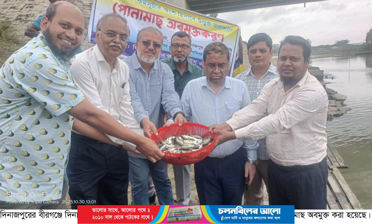 আমিষের চাহিদা পুরণে সামাজিক কর্মসূচীর অংশ হিসেবে দিনাজপুরের বীরগঞ্জে উন্মুক্ত জলাশয়ে পোনা মাছ অবমুক্ত করা হয়েছে।