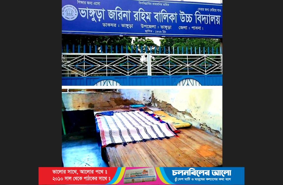 পাবনার ভাঙ্গুড়ায় জরিনা রহিম বালিকা উচ্চ বিদ্যালয়ের লাইব্রেরি কক্ষে রাখা হয়েছে একটি চৌকি। যেখানে নিয়মিত বিশ্রাম নেন বিদ্যালয়ের প্রধান শিক্ষক শওকত আলী ও তার স্ত্রী সহকারী গ্রন্থাগারিক আঞ্জুয়ারা বেগম। বিদ্যালয়ে এমন অমার্জিত কর্মকান্ডে শিক্ষক, শিক্ষার্থী ও অভিভাবকদের মধ্যে চরম ক্ষোভের সৃষ্টি হয়েছে। অভিযোগ রয়েছে, এর আগেও প্রধান শিক্ষক অফিস কক্ষে খাট পেতে বিশ্রাম করতেন। তার স্ত্রী বিদ্যালয়ের কর্মচারীদের দিয়ে কাপড় ধোয়া, খাবার রান্না করানোসহ ব্যক্তিগত কাজ করাতেন।