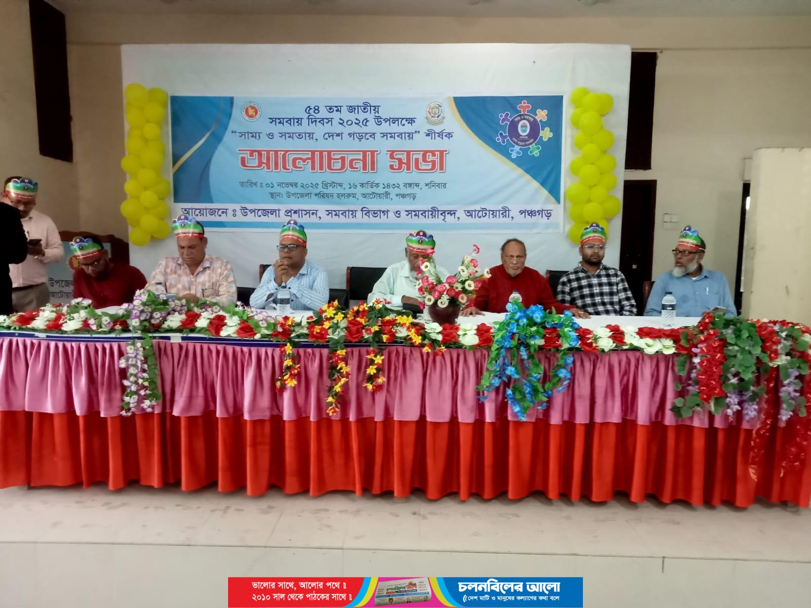“ সাম্য ও সমতায়, দেশ গড়বে সমবায়” এই প্রতিপাদ্য বিষয় এবং “সমবায় শক্তি, সমবায়ই মুক্তি ” শ্লোগান নিয়ে পঞ্চগড়ের আটোয়ারীতে বর্ণাঢ্য আয়োজনে ৫৪তম জাতীয় সমবায় দিবস-২০২৫ উদযাপিতহয়েছে। উপজেলা প্রশাসন, সমবায় বিভাগ ও সমবায়ীবৃন্দের আয়োজনে দিবসটি উপলক্ষে শনিবার ( ১ নভেম্বর) সকালে উপজেলা পরিষদ চত্বরে জাতীয় সঙ্গীত পরিবেশনের মাধ্যমে জাতীয় ও সমবায় পতাকা উেেত্তালন করা হয়। পরে একটি বর্ণাঢ্য র্যালি উপজেলা পরিষদ চত্বর থেকে বের হয়ে উপজেলার গুরুত্বপূর্ণ সড়ক প্রদক্ষিণ করে। র্যালি শেষে উপজেলা পরিষদ অডিটোরিয়ামে আলোচনা সভা অনুষ্ঠিত হয়। এতে উপজেলা সমবায় অফিসার মোঃ ফারুক হোসেন সভাপতিত্ব করেন এবং স্বাগত বক্তব্য রাখেন।