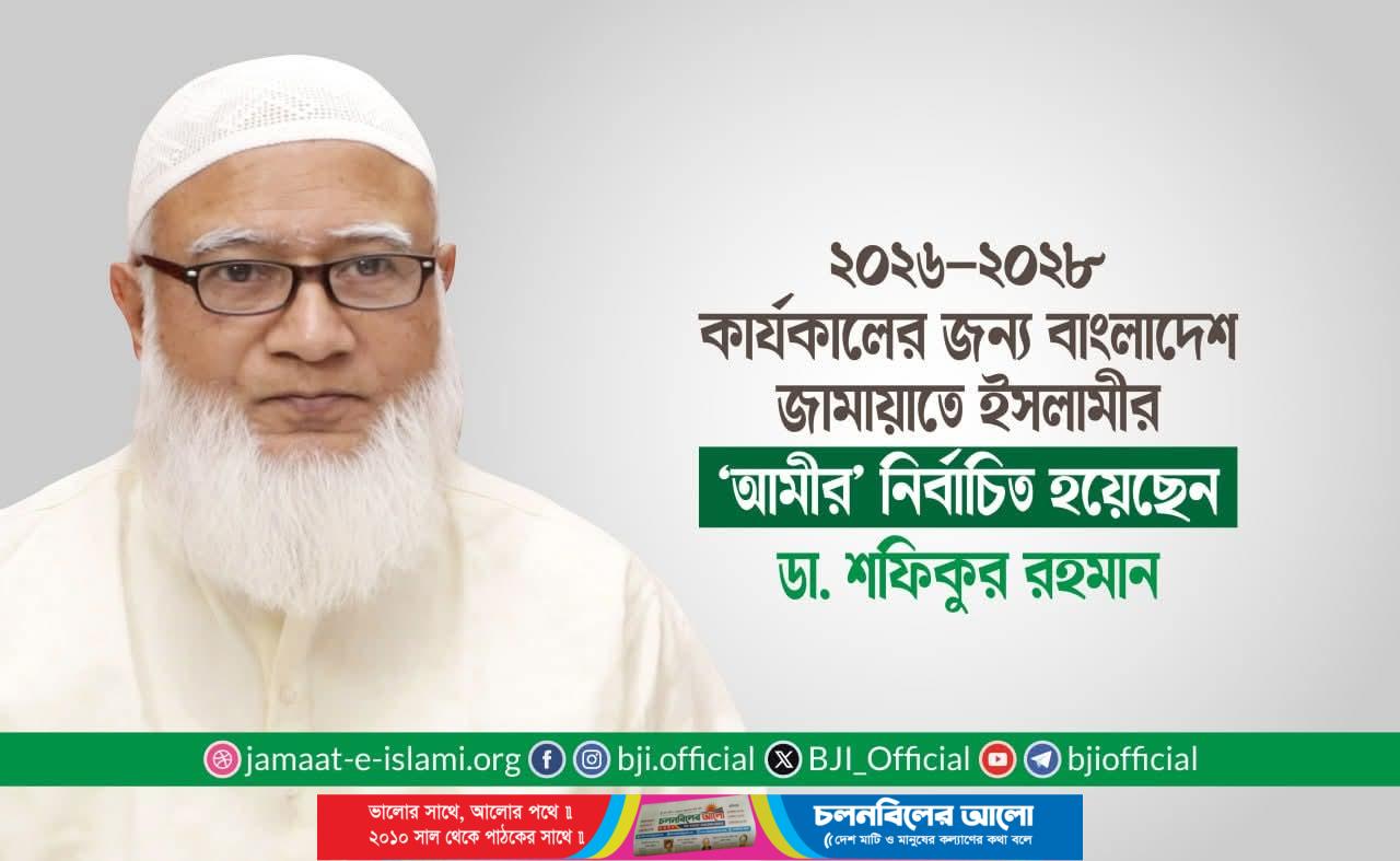 ২০২৬-২০২৮ কার্যকালের জন্য বাংলাদেশ জামায়াতে ইসলামীর ‘আমীর’ নির্বাচিত হয়েছেন ডা. শফিকুর রহমান