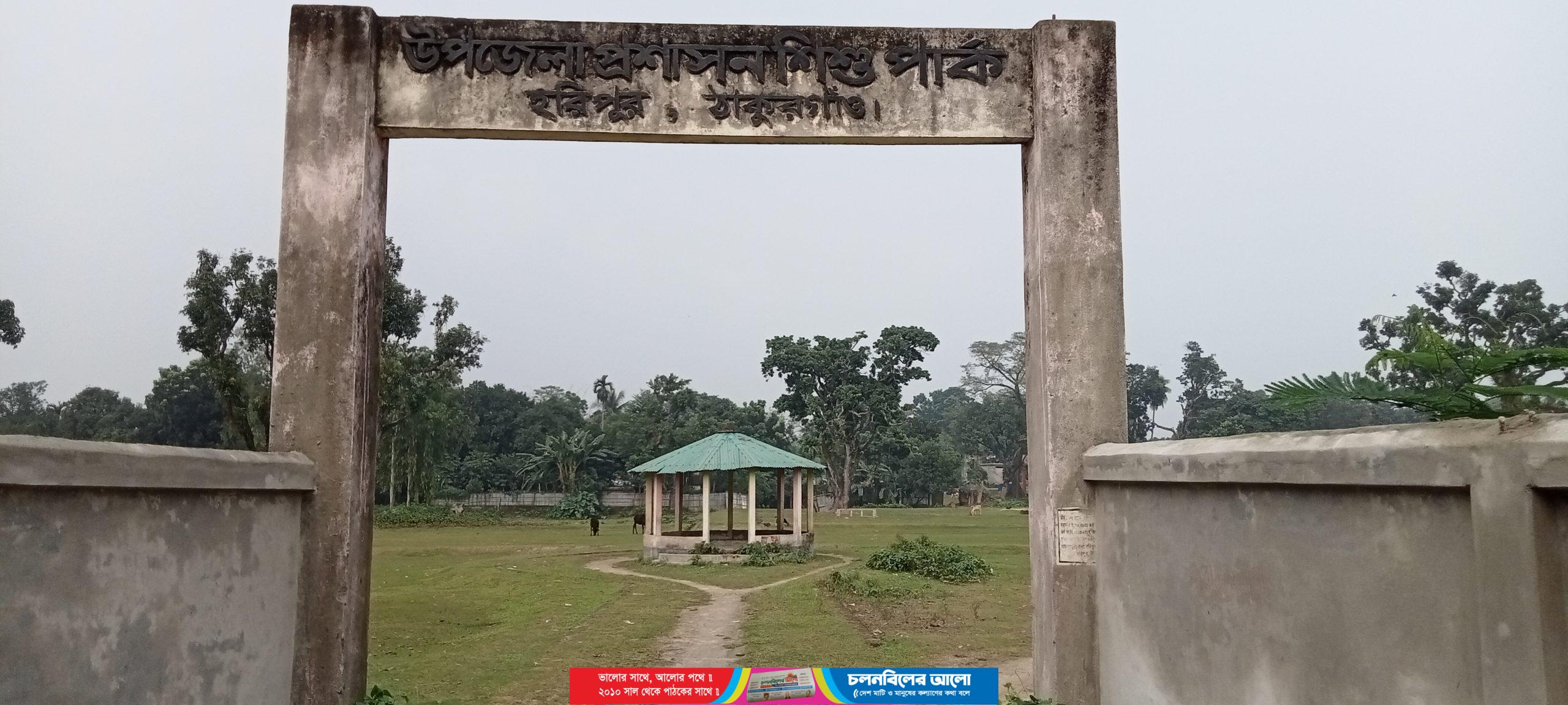 ঠাকুরগাঁওয়ের হরিপুরে শিশুপার্কে প্রশাসনের নজরদারি না থাকায় মাদক সেবীদের আড্ডা ও গোচারণ ভূমিতে পরিণত হয়ে বেহাল দশা হয়ে পড়েছে উপজেলা প্রশাসনের শিশুপার্কটি। উপজেলা সদরে থানার পাশে এর অবস্থান, স্থানীয়দের অভিযোগ এলাকায় চুরি, জুয়া ও মাদক কারবারি এবং মাদক সেবীদের সংখ্যা বৃদ্ধি পাচ্ছে। গত কয়েক দিনের ব্যবধানে হরিপুর কেন্দ্রীয় জাম্মে মসজিদের ওজুখানা থেকে দুটি পানির পাম্প চুরি হয়েছে। শিশুপার্কের চারদিকে কোনো সীমানা প্রাচীর না থাকায় সকাল থেকে বিকাল পর্যন্ত পার্কের মাঠে চড়ে গরু-ছাগল আর সন্ধ্যা পর্যন্ত স্থানীয়দের নিয়মিত যাতায়াত খাকলেও সন্ধ্যার পর সেখানে জমে উঠে মাদক সেবীদের আড্ডা। দীর্ঘদিন ধরে শিশুপার্ক অবকাঠামো উন্নয়ন কাজের কোনো উদ্যোগ না থাকায় জরাজীর্ণ ও বেহাল দশ্য হয়ে পড়েছে শিশুপার্কের পরিবেশ। নষ্ট হয়ে যাওয়ার পথে শিশুদের বিনোদনের সরঞ্জাম গুলি। সন্ধ্যার পর মাদক ব্যবসায়ীরা এখানে মাদক বিক্রিও শুরু করে। পার্কের পাশেই  নেই কোনো থানা পুলিশের অভিযান। জানা যায়, ২০১৬-১৭অর্থবছরে উপজেলা প্রশাসন শিশুপার্ক নির্মাণকাজ শুরু হয়। ২০১৮ সালের শেষের দিকে পার্কটি চালু হয়। এসময় প্রায় ১০ লক্ষাধিক টাকা ব্যয় করা হয় পার্কটি নির্মাণ এ।