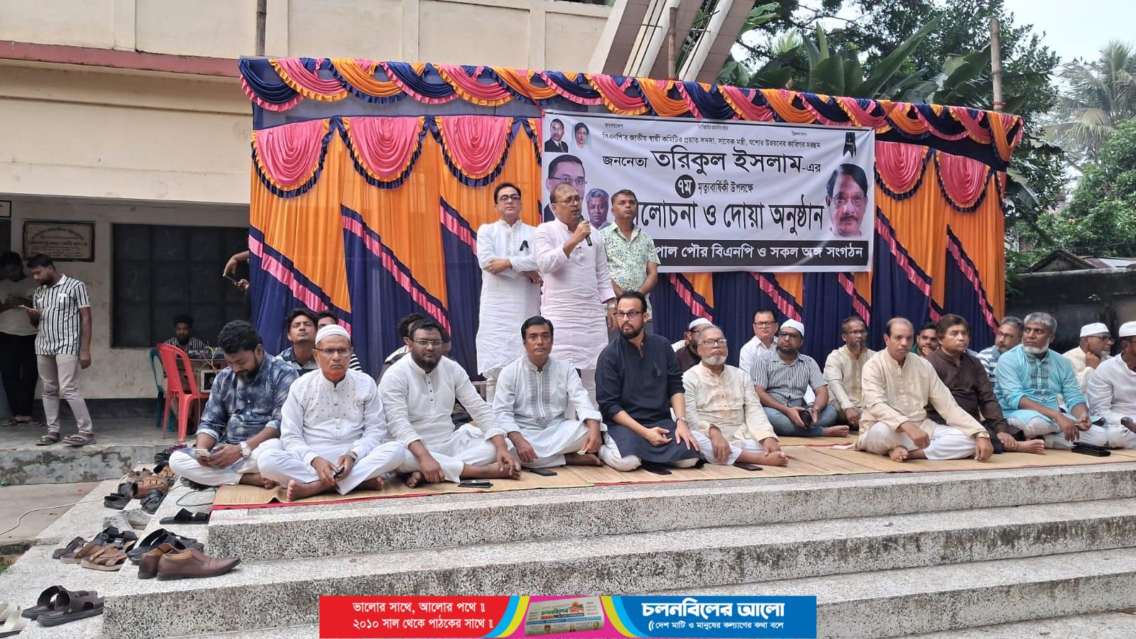 বিএনপির জাতীয় স্থায়ী কমিটির প্রয়াত সদস্য, সাবেক মন্ত্রী ও যশোর উন্নয়নের কারিগর মরহুম জননেতা তরিকুল ইসলাম এর ৭ম মৃত্যুবার্ষিকী উপলক্ষে বেনাপোল পৌর বিএনপির উদ্যোগে আলোচনা ও দোয়া অনুষ্ঠান অনুষ্ঠিত হয়েছে।