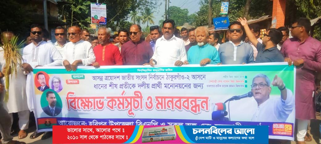 ঠাকুরগাঁও-২ আসনে ধানের শীষ প্রতিকে দলীয় মনোনয়ন চেয়ে হরিপুরে বিএনপির বিক্ষোভ মিছিল ও মানববন্ধ
