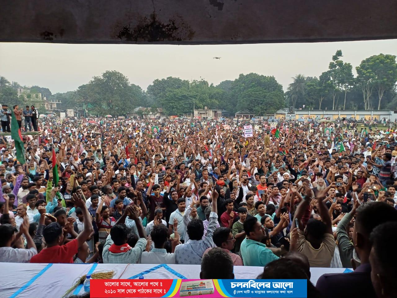 আসন্ন ত্রয়োদশ জাতীয় সংসদ নির্বাচনকে ঘিরে পাবনা-৩ (চাটমোহর, ভাঙ্গুড়া ও ফরিদপুর) আসনে বিএনপির মনোনয়ন নিয়ে স্থানীয় নেতাকর্মীদের মধ্যে তীব্র অসন্তোষ দেখা দিয়েছে। প্রার্থী পরিবর্তন এবং স্থানীয় নেতৃত্ব থেকে যোগ্য প্রার্থী মনোনয়নের দাবিতে সোমবার (১০ নভেম্বর) বিকেলে চাটমোহর পৌর সদরের বালুচর মাঠে অনুষ্ঠিত হয় এক বিশাল জনসমাবেশ। জাতীয় বিপ্লব ও সংহতি দিবস উপলক্ষে আয়োজিত এই কর্মসূচিতে উপজেলা ও পৌর বিএনপি, অঙ্গ ও সহযোগী সংগঠনের হাজারো নেতাকর্মী অংশ নেন। মাঠজুড়ে সৃষ্টি হয় জনসমুদ্রের মতো এক অভূতপূর্ব দৃশ্য।