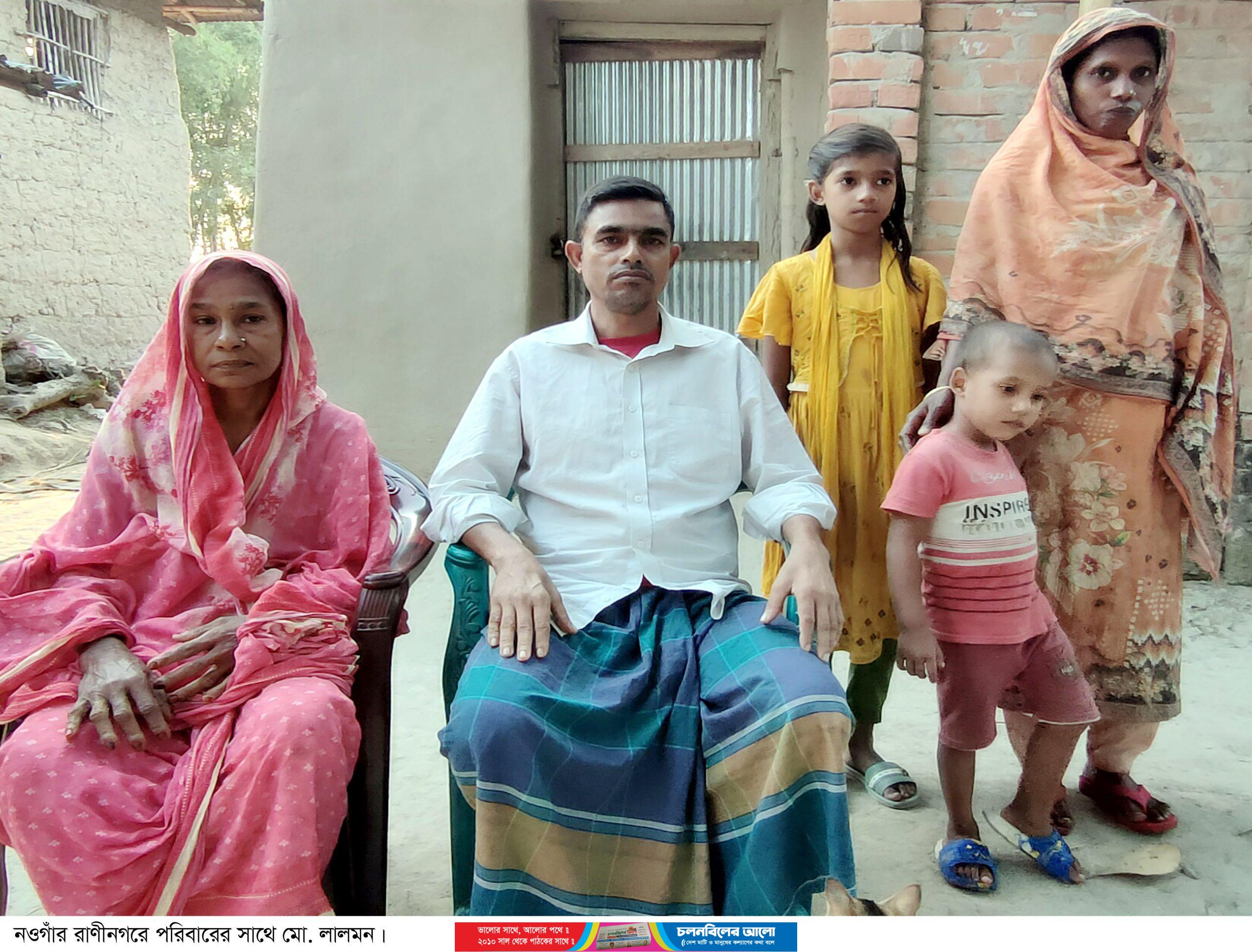 লালমনের মামা আব্দুল মজিদ জানান, লালমন শোলারপুকুর পাড়ে খাস জমিতে বসবাস করে। পরিবারের উপার্জনক্ষম মানুষ হচ্ছে লালমন ও তার বাবা। তারা দিনমজুরি কাজ করে সংসার চালায়। লালমন ছোটবেলা থেকেই ভালোভাবে কথা বলতে পারে না। অনেকটা ইশারার মাধ্যমে ভাষা প্রকাশ করে। মধ্যে লালমনের পরিবারে এক ছেলে ও এক মেয়ে সন্তান আছে। কিন্তু গত এক বছর যাবত লালমন শারীরিকভাবে দুর্বল হয়ে পড়ে। কাজকর্ম করতে পারে না। লালমনের হাত ও পায়ের আঙ্গুলের মাংস শুকিয়ে যাচ্ছে। যার কারণে লালমন ভালোভাবে দাঁড়াতে পারছে না। ঢাকা-রাজশাহীসহ বিভিন্ন স্থানে চিকিৎসার চেষ্টা করা হলেও ডাক্তাররা জানায় দেশে এমন বিরল রোগের উন্নত কোন চিকিৎসা নেই। পরবর্তীতে ঢাকায় চীনের আকুপাংচার সেন্টারে যোগাযোগ করা হলে তারা দুই মাসের থেরাপির কথা বলে এই থেরাপির খরচ দুই লাখ টাকা। কিন্তু এতোগুলো টাকা লালমনের দরিদ্র দিনমজুরের পরিবারের পক্ষে যোগান দেওয়া সম্ভব নয়।