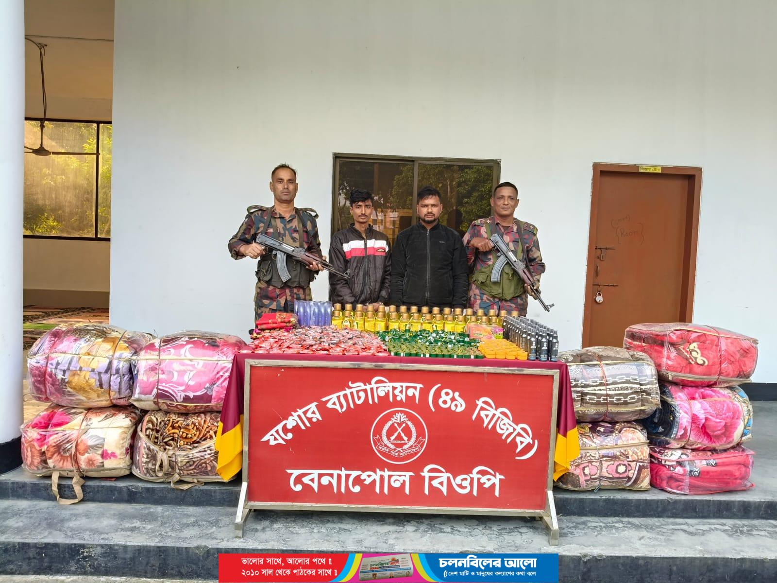 বেনাপোলে বিজিবির অভিযানে চোরাচালান পণ্যসহ আটক ২