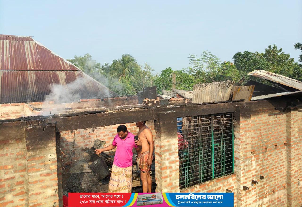রজব আলীর ভাতিজা আব্দুর রাজ্জাক জানান, দুপুর দেড়টার দিকে চাচা রজব আলীর ইটের দু’তলা বাড়িতে আগুন দেখতে পান স্থানীয় লোকজন। আগুন দ্রুত ছড়িয়ে পড়ে পার্শ্ববর্তী আজাদ ও জহিরের বাড়িতেও।প্রায় দুই ঘন্টার চেষ্টায় গ্রামবাসির সহযোগিতায় এআগুন নিয়ন্ত্রণে আসে। এতে চাচা রজব আলীর দু’তলা টিনের চালা, ছয়টি রুম এবং রুমের টিভি, ফ্রিজ, ধান, চাল সহ বিভিন্ন আসবাবপত্র পুড়ে ভস্মিভূত হয়ে যায়। এতে প্রায় সাত লাখ টাকার ক্ষতি হয়েছে।
