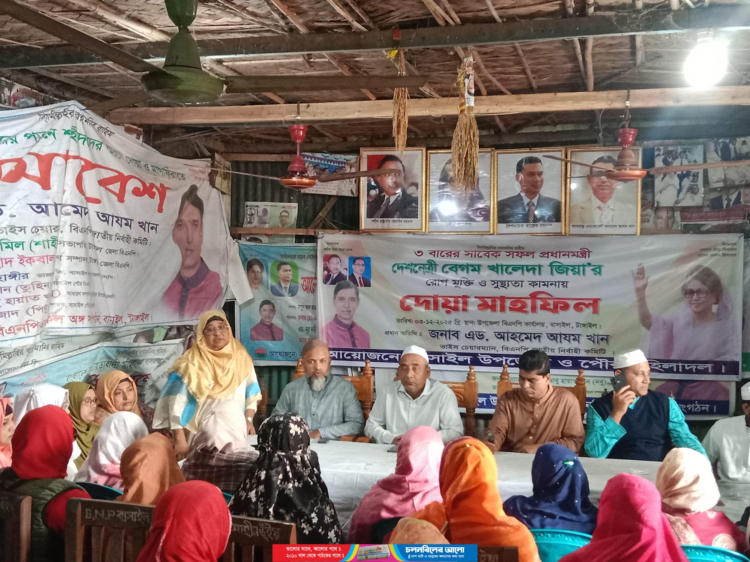 সাবেক প্রধানমন্ত্রী ও বিএনপির চেয়ারপারসন দেশনেত্রী বেগম খালেদা জিয়ার রোগমুক্তি কামনায় টাঙ্গাইলের বাসাইল উপজেলা মহিলা দলের উদ্যোগে দোয়া মাহফিল অনুষ্ঠিত হয়েছে। বুধবার (৩ ডিসেম্বর) দলের স্থানীয় কার্যালয়ে আয়োজিত অনুষ্ঠানে সভাপতিত্ব করেন উপজেলা মহিলা দলের সভাপতি রাশেদা সুলতানা রুবি।