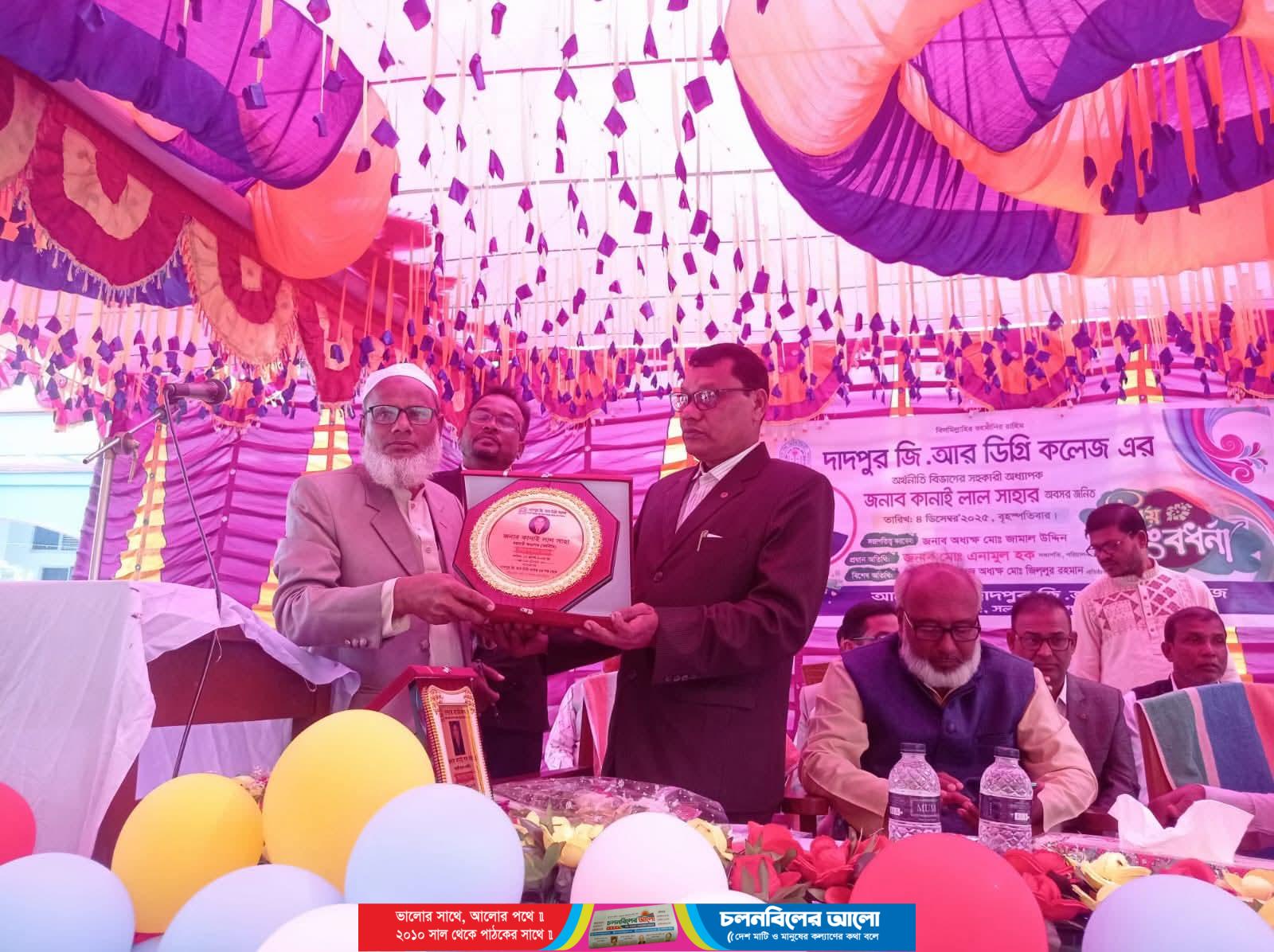সলংগা থানার দাদপুর জি.আর ডিগ্রি কলেজের অর্থনীতি বিভাগের সহকারী অধ্যাপক কানাই লাল সাহার অবসর জনিত বিদায় সংবর্ধনা অনুষ্ঠিত হয়েছে।আজ বৃহস্পতিবার (৪ ডিসেম্বর) সকালে দাদপুর জি.আর ডিগ্রি কলেজ প্রাঙ্গণে এই সংবর্ধনার আয়োজন করা হয়।