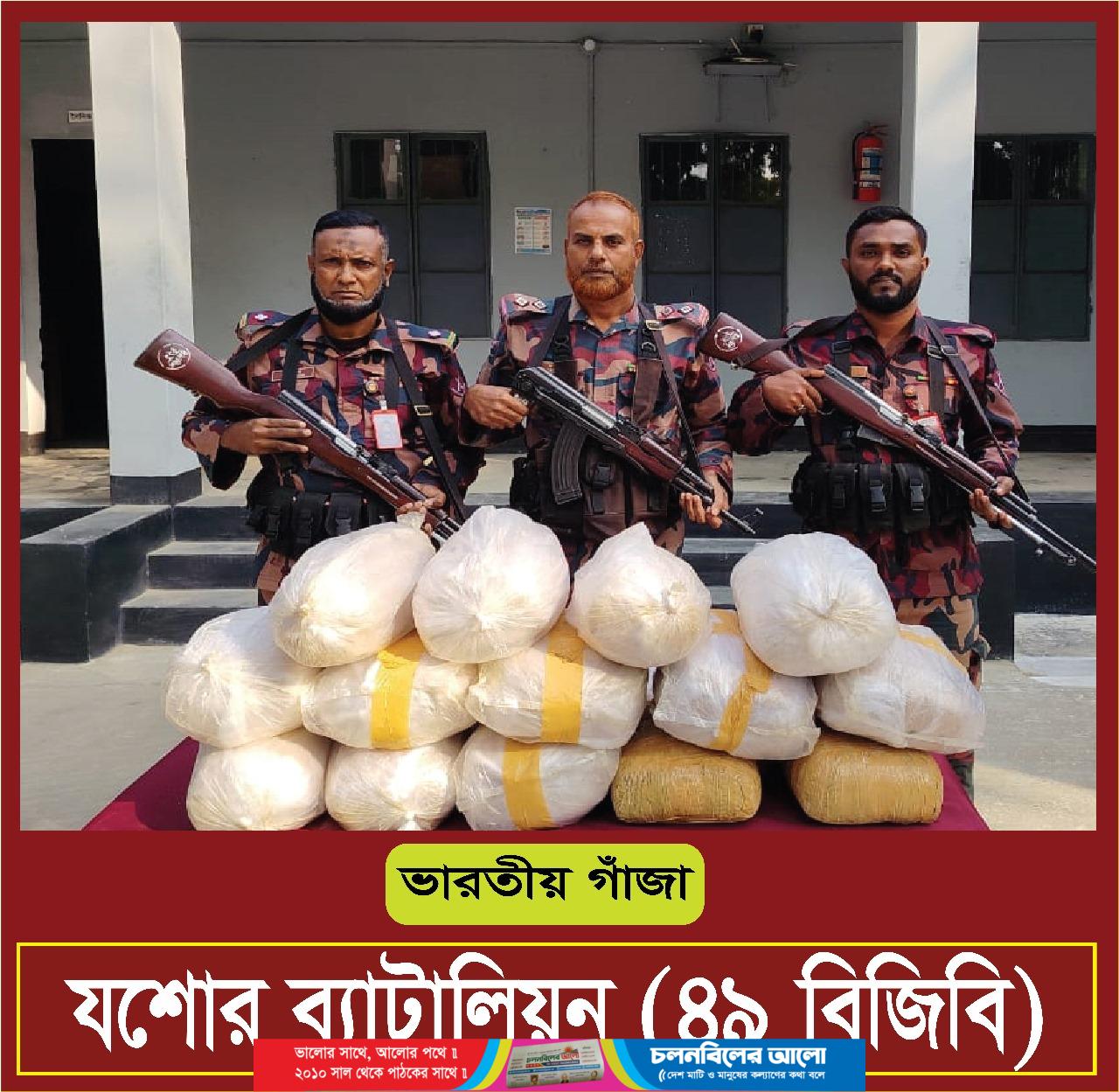 যশোরের ঘিবা সীমান্তে বিশেষ অভিযানে ৪১ কেজি ভারতীয় গাঁজা উদ্ধার করেছে বর্ডার গার্ড বাংলাদেশ (বিজিবি)।