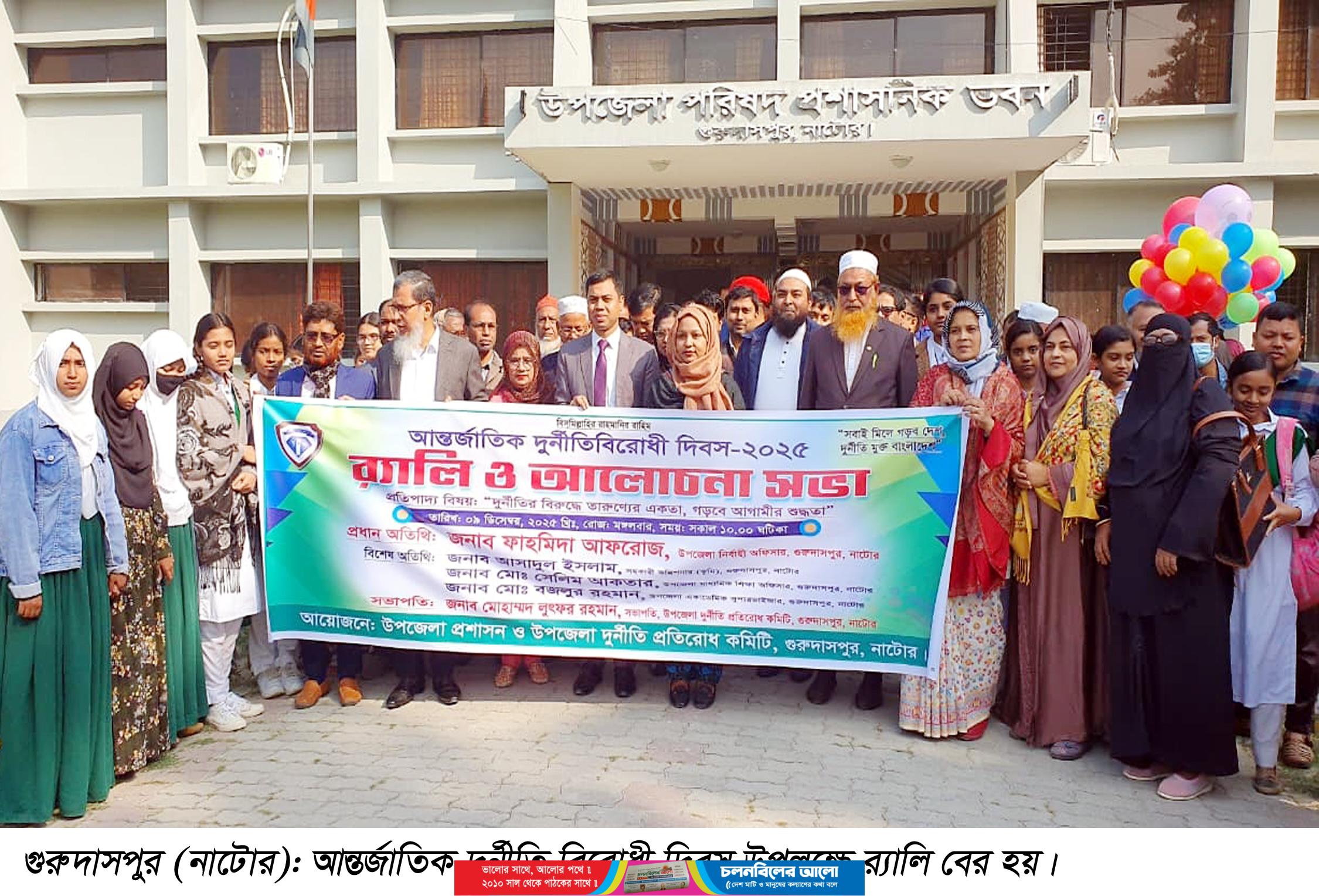 ‘দুর্নীতির বিরুদ্ধে তারুণ্যের একতা, গড়বে আগামীর শুদ্ধতা’ প্রতিপাদ্য বিষয়কে সামনে রেখে নাটোরের গুরুদাসপুরে আন্তর্জাতিক দুর্নীতি বিরোধী দিবস উপলক্ষে র্যালী ও আলোচনা সভা অনুষ্ঠিত হয়েছে।