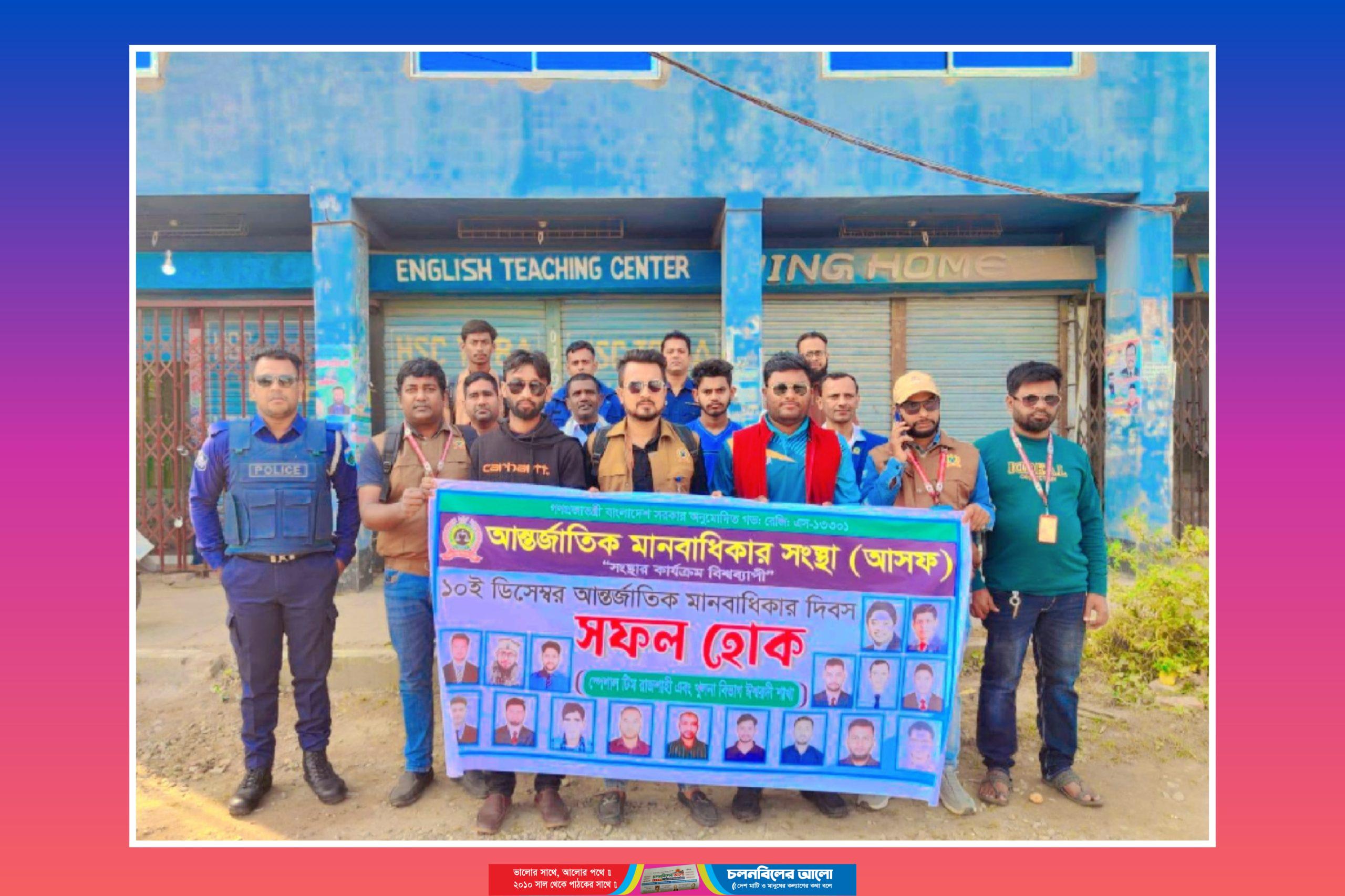 বিশ্ব আন্তর্জাতিক মানবাধিকার দিবস উপলক্ষে রাজশাহী ও খুলনা বিভাগীয় কমিটি ঈশ্বরদী শাখার উদ্যোগে আন্তর্জাতিক মানবাধিকার সংস্থা ও আইন সহায়তা ফাউন্ডেশনের পক্ষ থেকে ৭৭তম প্রতিষ্ঠাবার্ষিকীর আয়োজন করা হয়েছে। আজ বুধবার (১০ ডিসেম্বর) সকাল ৯টার সময় বিশাল র্যালি ও শোভাযাত্রার মধ্য দিয়ে দিবসটি পালন করা হয়েছে। ঈশ্বরদী সরকারি কলেজ রোডস্থ বকুলের মোড় থেকে র্যালি ও শোভাযাত্রাটি বের করে শহরের প্রধান প্রধান সড়ক প্রদক্ষিণ শেষে ঈশ্বরদী প্রেসক্লাবের সামনে গিয়ে শেষ হয়। রাজশাহী ও খুলনা বিভাগীয় স্পেশাল কমিটির সভাপতি মো. জাকির হোসেন এর সভাপতিত্বে