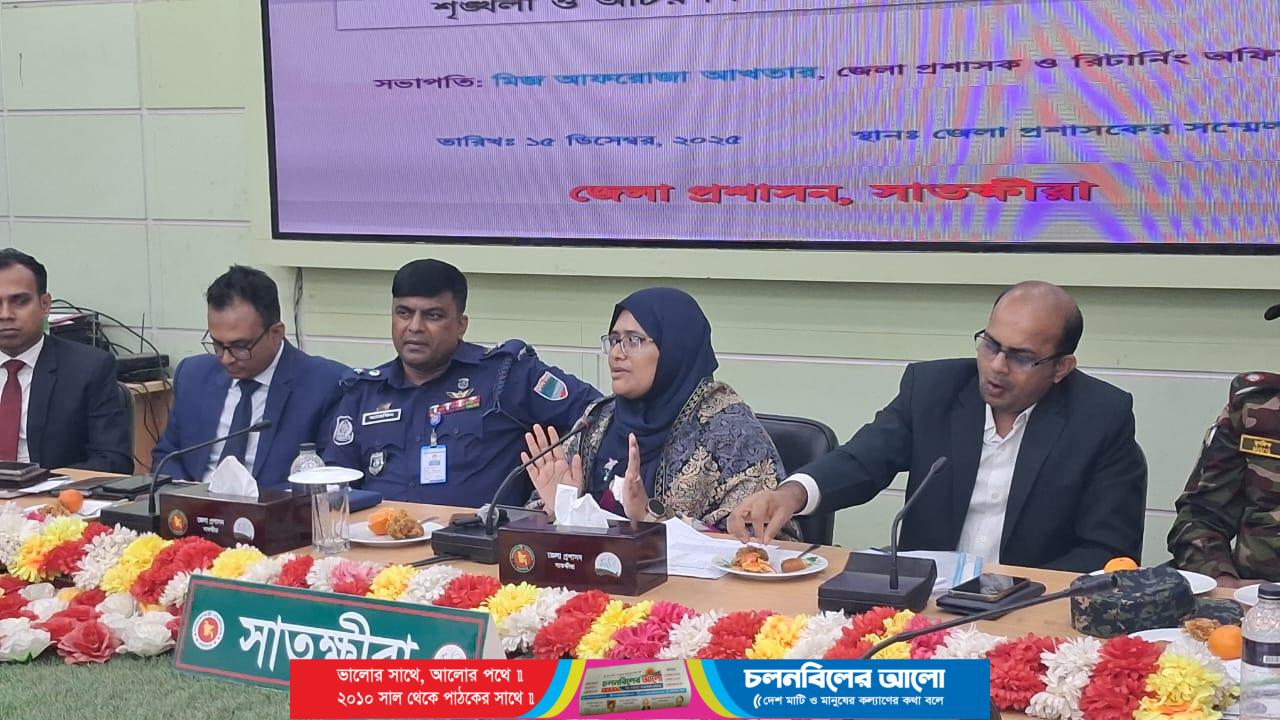 আসন্ন ত্রয়োদশ জাতীয় সংসদ নির্বাচনকে সামনে রেখে নির্বাচনী আচরণবিধি প্রতিপালন ও সার্বিক আইন-শৃঙ্খলা পরিস্থিতি বজায় রাখার লক্ষ্যে সাতক্ষীরাতে এক গুরুত্বপূর্ণ মতবিনিময় সভা অনুষ্ঠিত হয়েছে। অদ্য ১৫ ডিসেম্বর ২০২৫ খ্রিঃ দুপুর ৩টায় জেলা প্রশাসকের কার্যালয়ের সম্মেলন কক্ষে এ সভা অনুষ্ঠিত হয়। সভায় সভাপতিত্ব করেন , জেলা প্রশাসক ও জেলা রিটানিং অফিসার মিস আফরোজা আক্তার। এতে প্রধান অতিথি হিসেবে উপস্থিত ছিলেন ,পুলিশ সুপার মো: আরেফিন জুয়েল । সভায় জেলা পুলিশ ও জেলা প্রশাসনের ঊর্ধ্বতন কর্মকর্তাগণ, বিভিন্ন সরকারি দপ্তরের কর্মকর্তা, নির্বাচনী কর্মকর্তাবৃন্দ, স্থানীয় প্রশাসনের প্রতিনিধিসহ নিরাপত্তা সংশ্লিষ্ট বিভিন্ন বিভাগের প্রধানগণ অংশগ্রহণ করেন। মতবিনিময় সভায় নির্বাচনী আচরণবিধি কার্যকরভাবে প্রতিপালন নিশ্চিতকরণ, ভোটগ্রহণ কেন্দ্রের নিরাপত্তা জোরদার, সার্বিক আইন-শৃঙ্খলা রক্ষা এবং সুষ্ঠু ও শান্তিপূর্ণভাবে নির্বাচন সম্পন্ন করার লক্ষ্যে প্রয়োজনীয় পদক্ষেপ ও করণীয় বিষয়ে বিস্তারিত আলোচনা করা হয়। সভায় অংশগ্রহণকারীরা অবাধ, সুষ্ঠু ও গ্রহণযোগ্য নির্বাচন আয়োজনের জন্য পারস্পরিক সমন্বয় ও দায়িত্বশীল ভূমিকা পালনের ওপর গুরুত্বারোপ করেন।