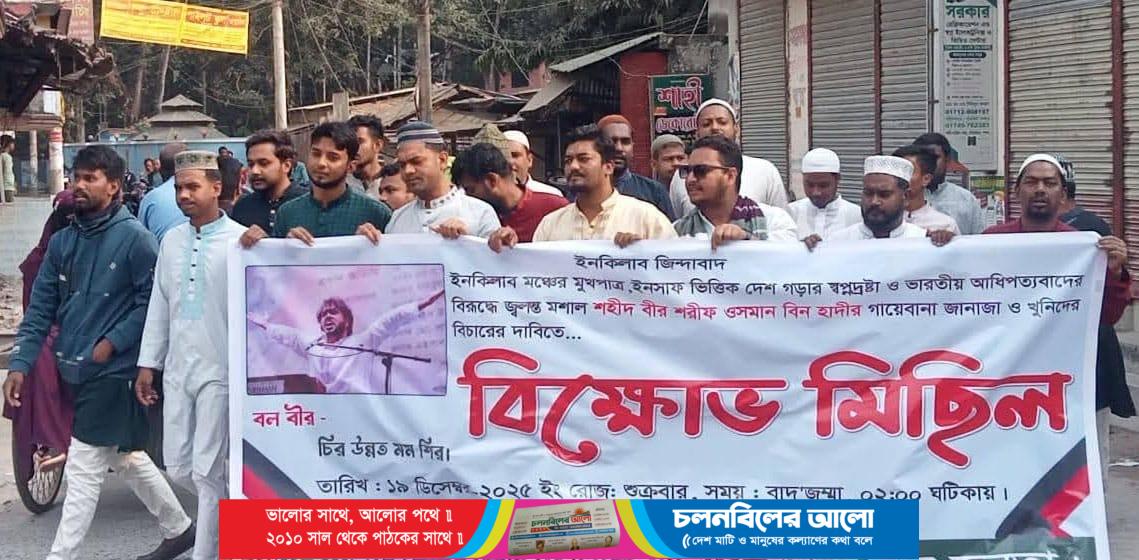 চাটমোহরে হাদি হত্যার বিচার দাবিতে বিক্ষোভ মিছিল ও মসজিদে দোয়া