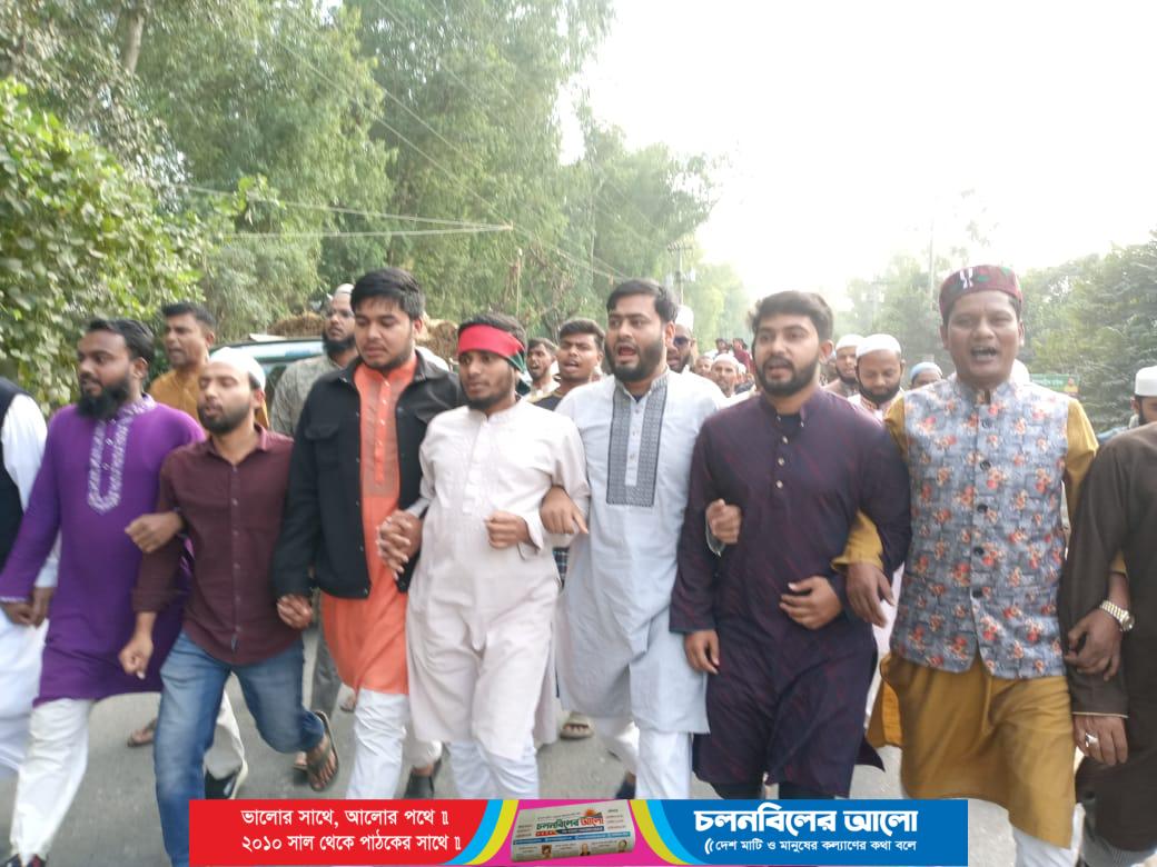 আজ (শুক্রবার) দুপুরে এনায়েতপুর মন্ডলপাড়া থেকে বিক্ষোভ মিছিলটি শুরু হয় এরপর কেজির মোড় হয়ে বেতিল বাজারে প্রতিবাদ সমাবেশে মিলিত হয়।