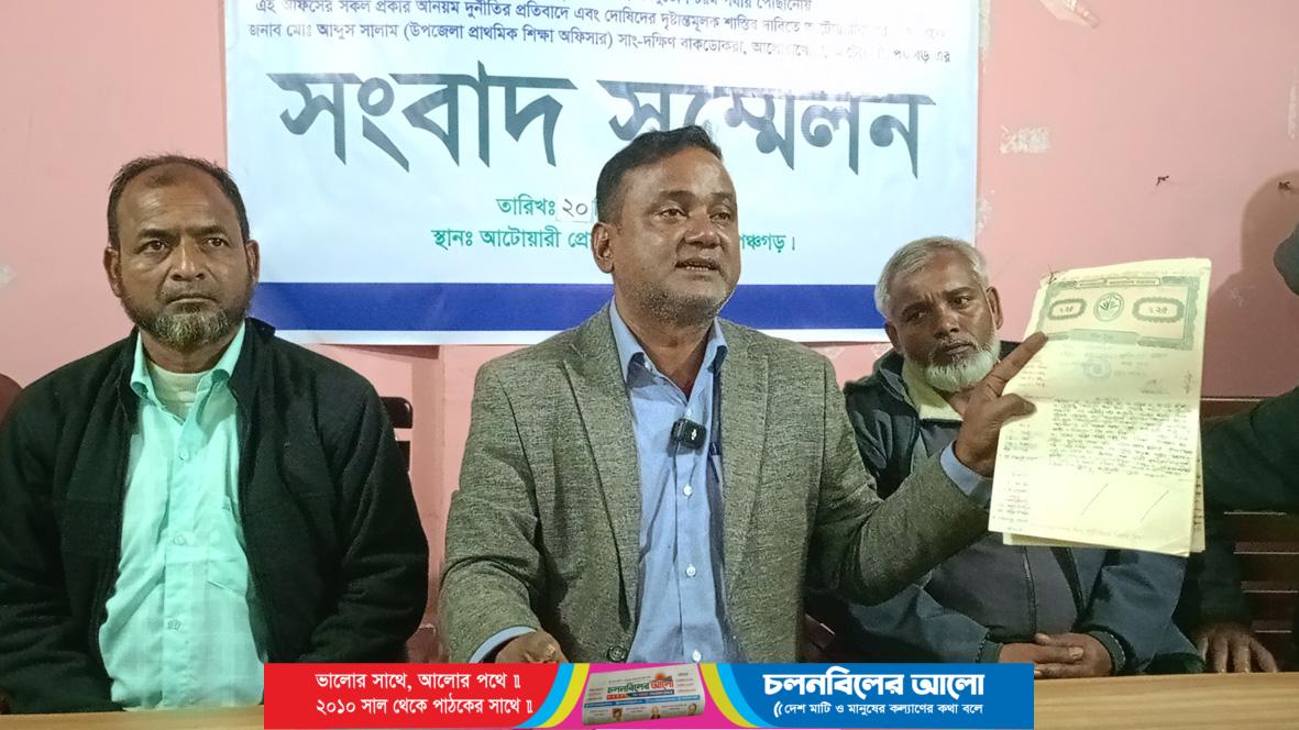 পঞ্চগড়ের আটোয়ারী সাব রেজিষ্ট্রি অফিসে রেজিষ্ট্রিকৃত এক জমির দলিলের ভলিয়ম পরিবর্তন করে দুই ধরনের সার্টিফাই কপি প্রদান করায় ভুক্তভোগী সংবাদ সম্মেলন করে দোষীদের বিচার দাবী করেছেন। আটোয়ারী প্রেসক্লাবে ২০ ডিসেম্বর সন্ধ্যায় সংবাদ সম্মেলন করে বক্তব্য রাখেন ভুক্তভোগী উপজেলার আলোয়াখোয়া ইউনিয়নের দক্ষিণ বাকডোকরা গ্রামের জনৈক মোঃ আব্দুস সালাম। বাংলাদেশ প্রাথমিক শিক্ষা অধিদপ্তরে কর্মরত শিক্ষা কর্মকর্তা মোঃ আব্দুস সালাম তার লিখিত বক্তব্য পাঠ করে বলেন, তার বাবা গত ২০২১ খ্রি: আটোয়ারী সাব রেজিষ্ট্রী অফিসে ৩৬২৩ নম্বর দলিল মূলে ৫০ শতাংশ জমি তাদের ৫ বোনদের মাঝে হেবার মাধ্যমে সম্পত্তি হস্তান্তর করেন। শিক্ষা কর্মকর্তা ৫ বোনের মধ্যে ৪ জনের অংশ তার নামে ক্রয় করে জমিতে ভোগ দখল করতে গিয়ে ঘটনাটি জানতে পারেন। এমর্মে তারা উক্ত দলিলের সার্টিফাই কপি ২০২৩ সালে প্রথমবার উত্তোলন করেন। পরবর্তীতে চলতি সালে আরেকবার উক্ত দলিলের সার্টিফাই কপি উত্তোলন করে দেখেন, সাব-রেজিষ্ট্রি অফিসের কর্মকর্তা-কর্মচারীদের যোগসাজশে অবৈধ লেনদেনের মাধ্যমে জমির আকার-আকৃতি পরিবর্তন পূর্বক ভলিয়ম পরিবর্তন করে তাকে ক্ষতিগ্রস্থ করা হয়েছে। এছাড়াও কারনে অকারনে এই অফিসে আসা সেবা গ্রহিতাদের কাগজপত্র ঠিক থাকা সত্ত্বেও কৃত্তিম সমস্যা দেখিয়ে অবৈধ উৎকোচ গ্রহণের ফায়দা লুফে নিচ্ছেন অফিস কর্তৃপক্ষ। ভুক্তভোগী তার সমস্যার বিষয়টি বর্তমান সাবরেজিষ্ট্রারকে অবহিত করেও কোন সুরাহা না পেয়ে অত্র অফিসে কর্মরত সংশ্লিষ্ট সকলের বিচার চেয়ে সংবাদ সম্মেলনের আয়োজন করেন।