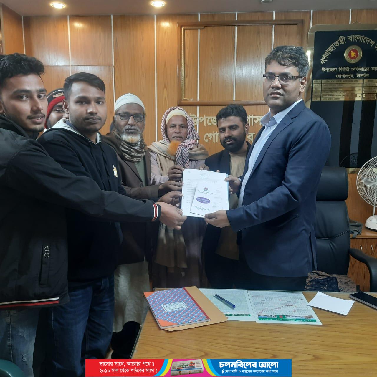 বুধবার (২৪ ডিসেম্বর) বিকেল ৪টার দিকে শাকিল উজ্জামানের বাবা ও গণঅধিকার পরিষদের স্থানীয় নেতৃবৃন্দ গোপালপুর উপজেলা পরিষদ কার্যালয়ে উপস্থিত হয়ে সহকারী রিটার্নিং অফিসার ও উপজেলা নির্বাহী অফিসার মোঃ জিল্লুর রহমান-এর কাছ থেকে মনোনয়ন ফরম সংগ্রহ করেন।