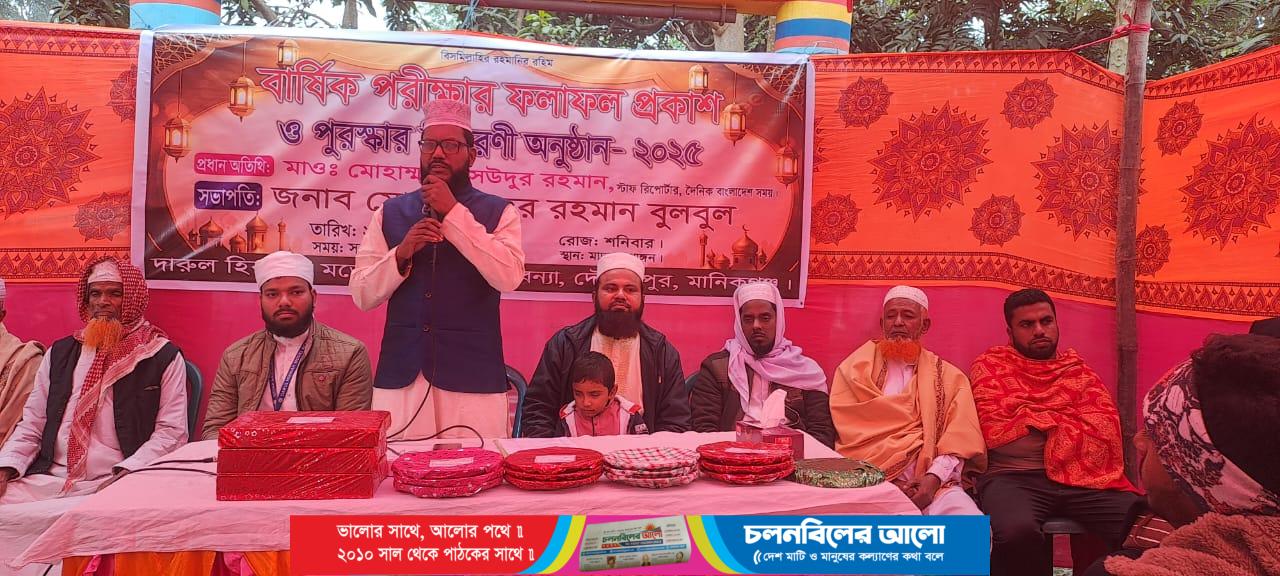 মানিকগঞ্জের দৌলতপুরে বৈন্যা দারুল হিকমাহ মডেল একাডেমির বার্ষিক পরীক্ষার ফলাফল প্রকাশ ও পুরস্কার বিতরণী অনুষ্ঠান অনুষ্ঠিত হয়েছে। শনিবার (২৭ ডিসেম্বর ) দারুল হিকমাহ মডেল একাডেমি প্রাঙ্গনে অত্র মাদ্রাসার প্রতিষ্ঠাতা পরিচালক মোঃ বাহাদুর রহমান বুলবুলের সভাপতিত্বে প্রধান অতিথি হিসেবে বক্তব্য রাখেন সাংবাদিক মাওঃ মোঃ মাসউদুর রহমান সাবেক সিনিয়র সহ-সভাপতি দৌলতপুর প্রেসক্লাব, আরো বক্তব্য রাখেন শায়েখ আরিফুর রহমান, মো. ফেরদৌস, মোঃ সোনা মিয়ার সাবেক ইউপি সদস্য, কারী আব্দুল জব্বার প্রমুখ।এ সময় উপস্থিত ছিলেন শিক্ষার্থী সহ অভিভাবক ও এলাকার গণ্যমান্য ব্যক্তিবর্গ।