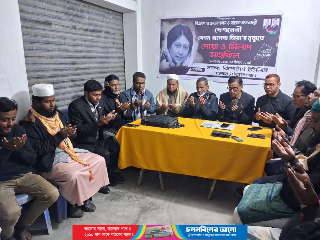 বেগম খালেদা জিয়া স্মরণে সলঙ্গায় সাংবাদিকদের দোয়া মাহফিল