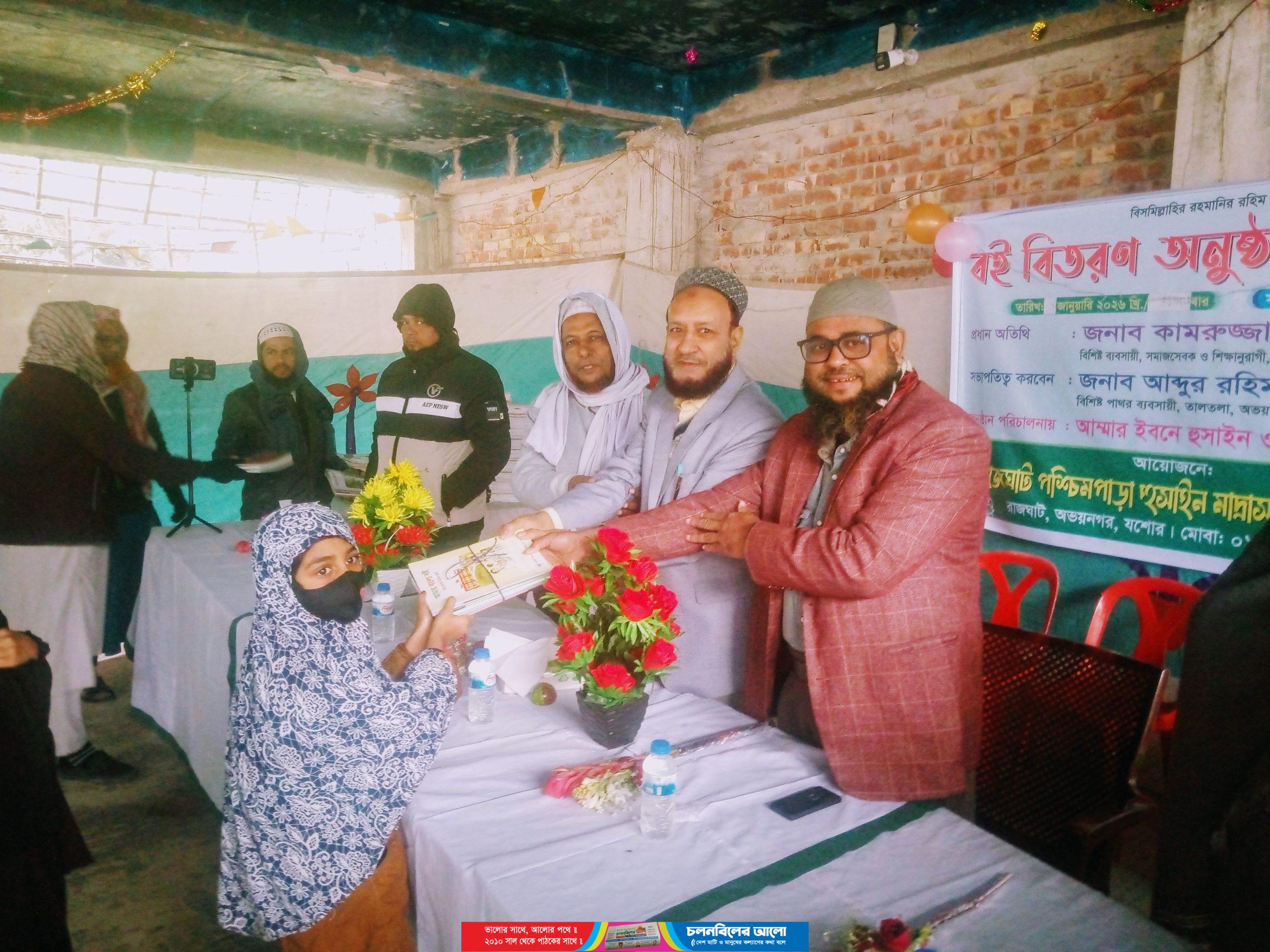 যশোরের অভয়নগরের রাজঘাট পশ্চিমপাড়া হুসাইন (রাঃ) মাদ্রাসা ও এতিমখানায় শিক্ষার্থীদের মাঝে বিনামূল্যে বই বিতরণ করা হয়েছে। মঙ্গলবার (৬ জানুয়ারি) সকাল ১১টায় মাদ্রাসা ভবনে আয়োজিত এ অনুষ্ঠানে অংশ নেন শিক্ষক, শিক্ষার্থী, অভিভাবক এবং স্থানীয় গণ্যমান্য ব্যক্তিবর্গ।