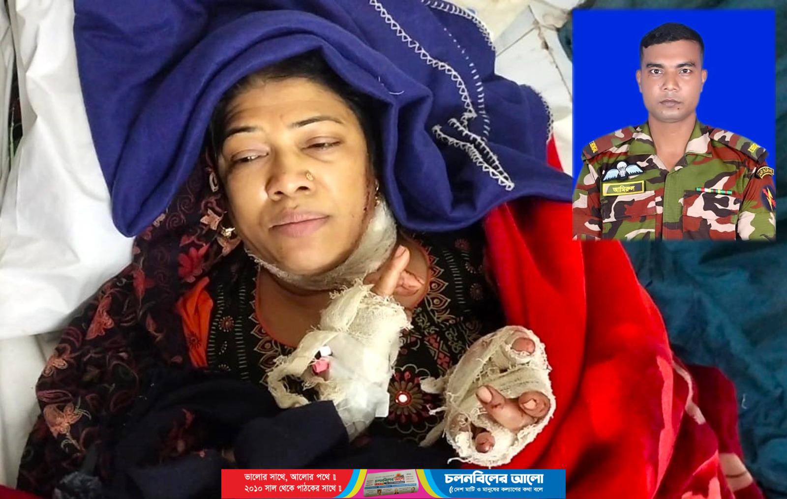 আহত নার্স সুলতানা জাহান ডলি (২৮) আটঘরিয়া উপজেলার কুষ্টিয়া পাড়ার শাহজাহান আলীর মেয়ে। তিনি চাটমোহর উপজেলা স্বাস্থ্য কমপ্লেক্সে নার্স হিসেবে দায়িত্ব পালন করছেন। অভিযুক্ত স্বামী আমিরুল ইসলাম (৩৫) চাটমোহর উপজেলার পার্শ্বডাঙ্গা ইউনিয়নের মল্লিকবাইন গ্রামের নুর মোহাম্মদের ছেলে, পেশায় সে সেনা সদস্য।