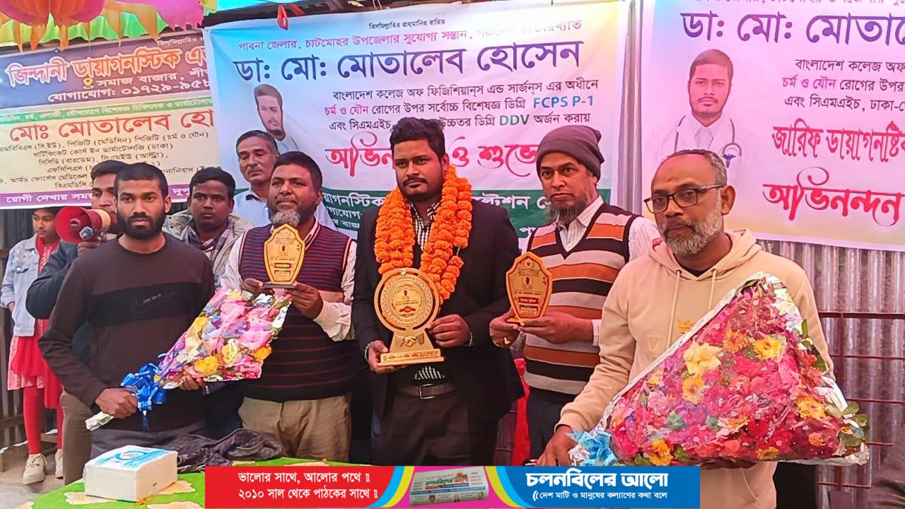 চাটমোহরে গরিবের ডাক্তার ডা. মো. মোতালেব হোসেনের উচ্চতর ডিগ্রি অর্জনে সংবর্ধনা প্রদান