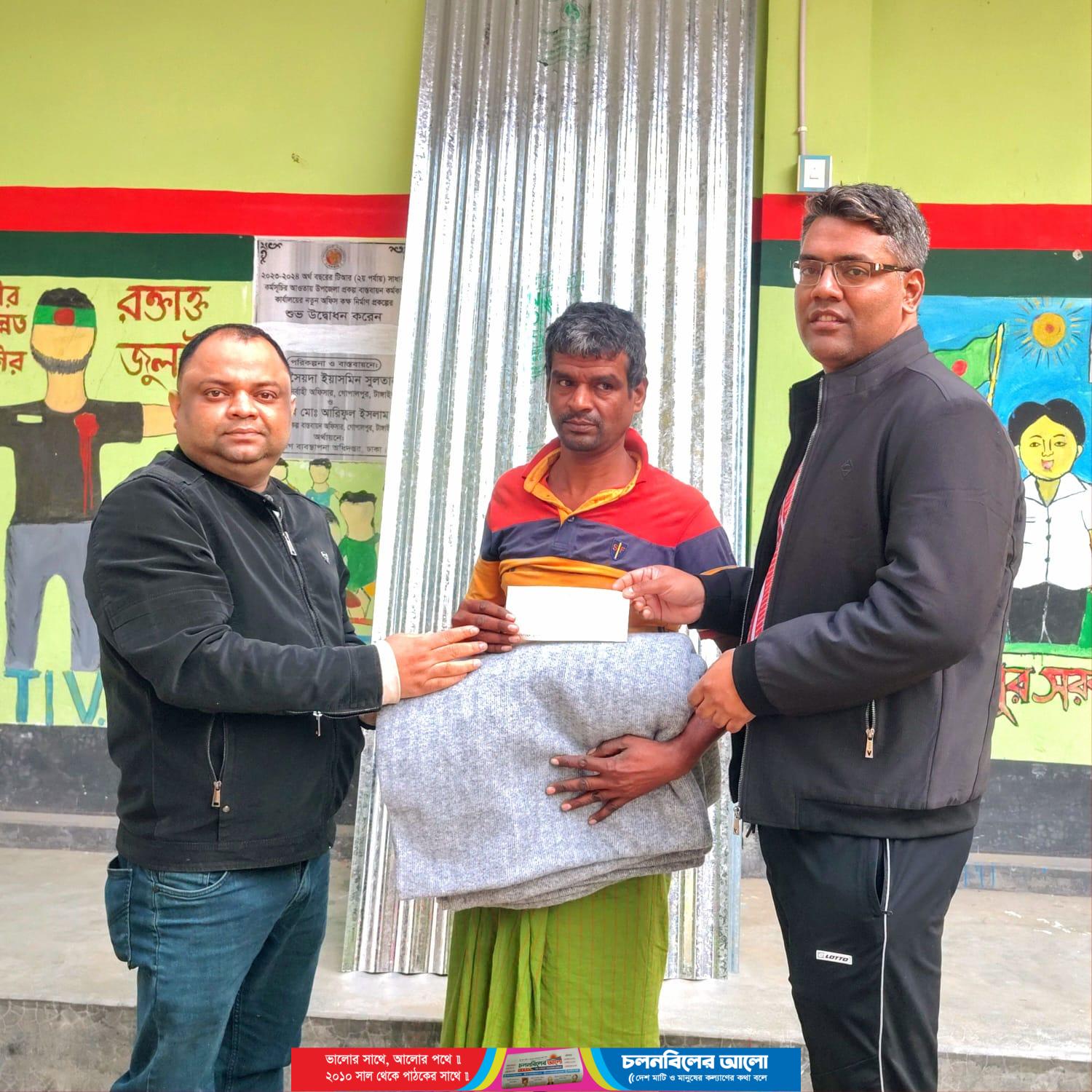 এ সময় নাসির উদ্দিনকে ৮পিস ঢেউটিন, তিন হাজার টাকার একটি চেক এবং দুইটি কম্বল তুলে দেন ইউএনও মো. জিল্লুর রহমান। সহায়তা প্রদানকালে উপস্থিত ছিলেন উপজেলা প্রকল্প বাস্তবায়ন কর্মকর্তা মো. আরিফুল ইসলামসহ দপ্তরের অন্যান্য কর্মকর্তা ও কর্মচারীবৃন্দ।