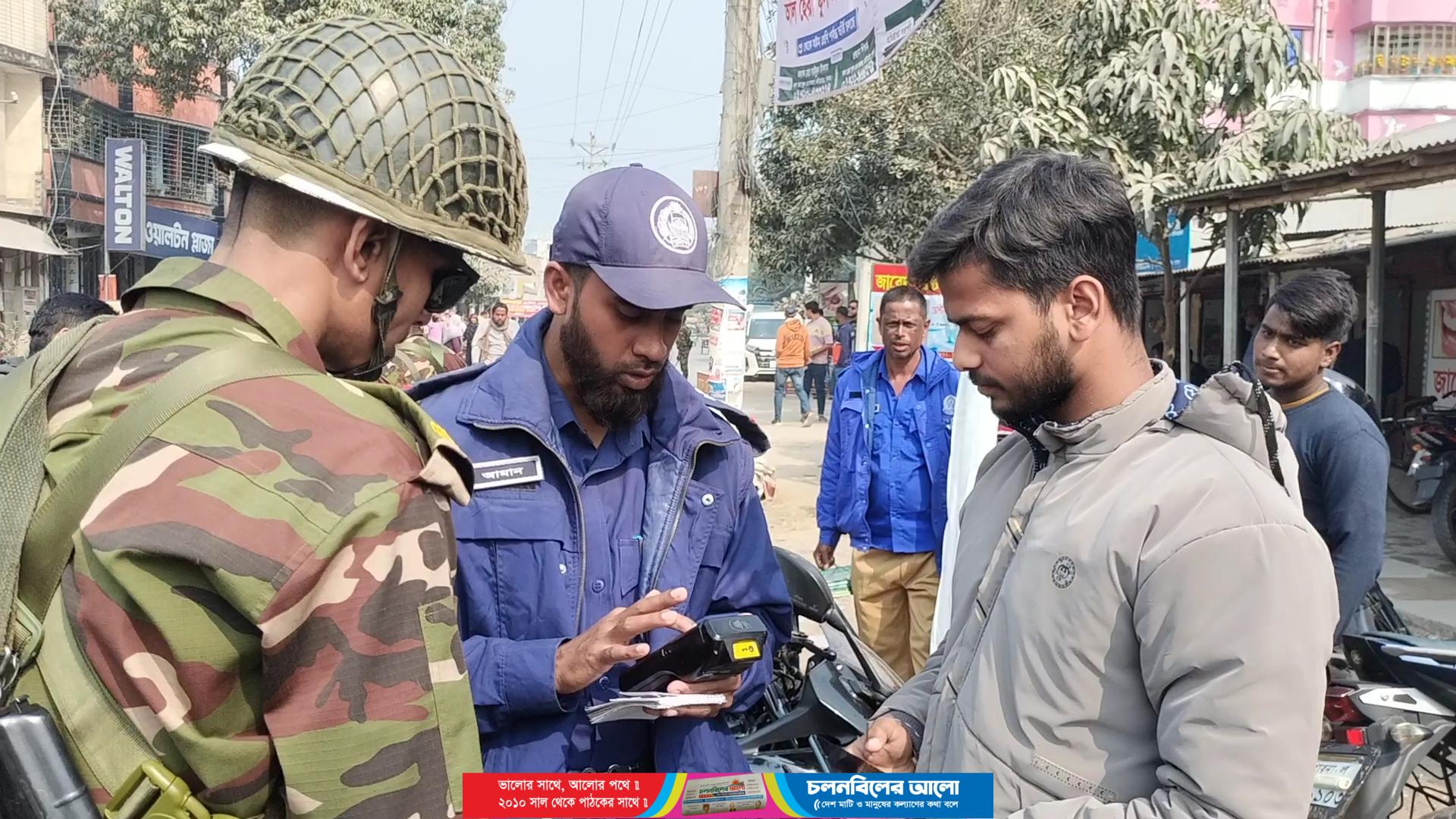 পাবনার চাটমোহর পৌর সদরের বাসস্ট্যান্ড এলাকায় বাংলাদেশ সেনাবাহিনী, পুলিশ এর যৌথ চেকপোস্টে বিভিন্ন যানবাহনের কাগজপত্র না থাকায় মামলা প্রদান করা হয়েছে।