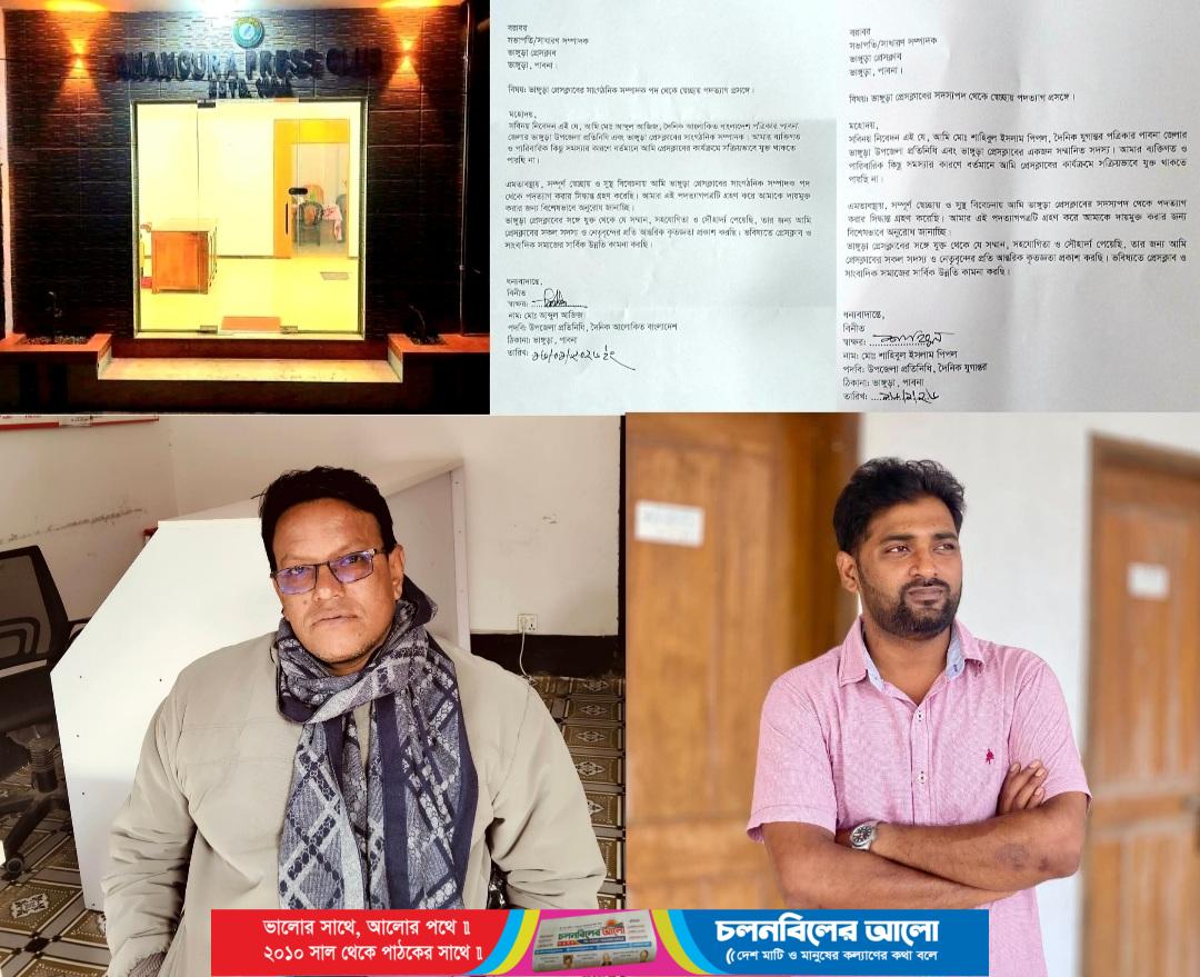 পাবনার ভাঙ্গুড়া প্রেসক্লাবের একাংশের দুই সদস্য স্বেচ্ছায় তাদের পদ থেকে পদত্যাগ করেছেন। ব্যক্তিগত ও পারিবারিক কারণ দেখিয়ে তারা এই সিদ্ধান্ত নিয়েছেন।