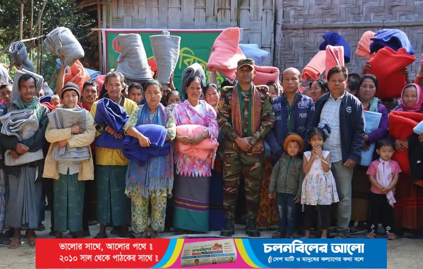 বুধবার (২১ জানুয়ারি) সকাল ১০ট থেকে ১১টা পর্যন্ত আলীকদম সেনা জোনের আওতাধীন কমলাবাগান এলাকার মার্মা, চাকমা ও ত্রিপুরা অধ্যুষিত তিনটি পাহাড়ি পাড়ায় মোট ১০০টি অসচ্ছল পরিবারের মাঝে শীতের কম্বল বিতরণ করা হয়।