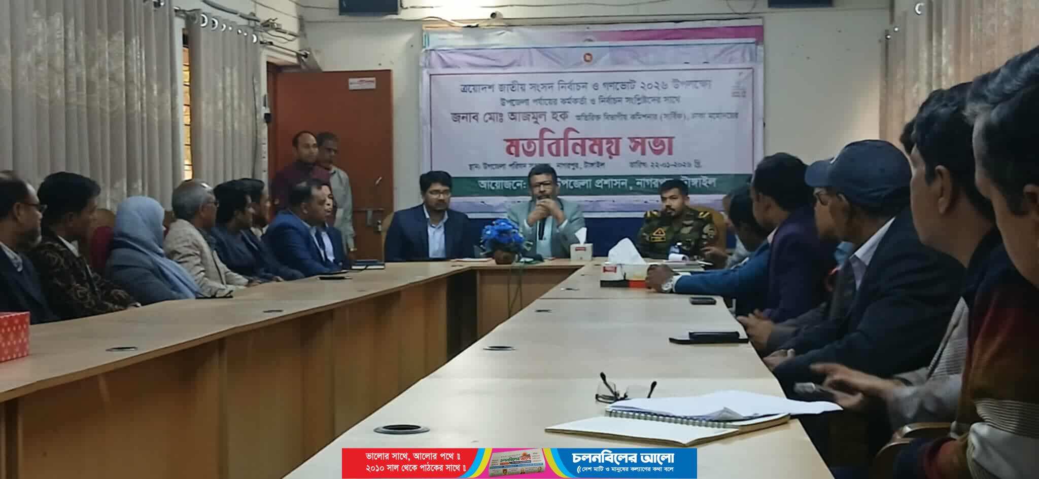 এয়োদশ জাতীয় সংসদ নির্বাচন ও গণভোট-২০২৬ উপলক্ষে মতবিনিময় সভা অনুষ্ঠিত হয়েছে। বৃহস্পতিবার বিকালে উপজেলা হল রুমে এ মতবিনিময় সভার আয়োজন করেন উপজেলা প্রসাশন। উপজেলা নির্বাহী অফিসার মো.এরফান উদ্দিন এর সভাপতিত্বে প্রধান অতিথি হিসেবে বক্তব্য রাখেন অতিরিক্ত বিভাগীয় কমিশনার (সার্বিক) মো.আজমুল হক। এসময় উপজেলা সহকারী কমিশনার (ভূমি) দ্বীপ ভৌমিক, নাগরপুর উপজেলা নির্বাচনী কর্মকর্তা মো. মেহেজুল হাসান, উপজেলা মাধ্যমিক শিক্ষা অফিসার মো.নাদির আহমেদসহ উপজেলার সকল দপ্তরের কর্মকর্তারা উপস্থিত ছিলেন।