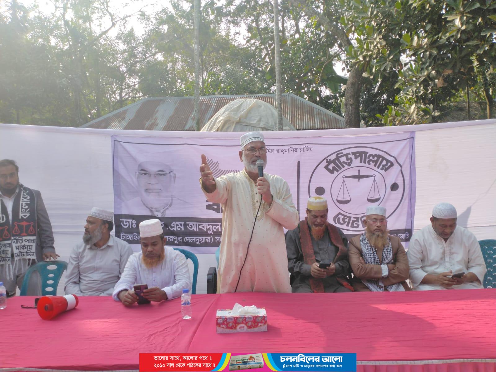 উঠান বৈঠকে প্রধান অতিথি হিসেবে বক্তব্য রাখেন টাঙ্গাইল–৬ (নাগরপুর–দেলদুয়ার) আসনের ১১ দলীয় জোট মনোনীত সংসদ সদস্য প্রার্থী ডা. একেএম আব্দুল হামিদ।