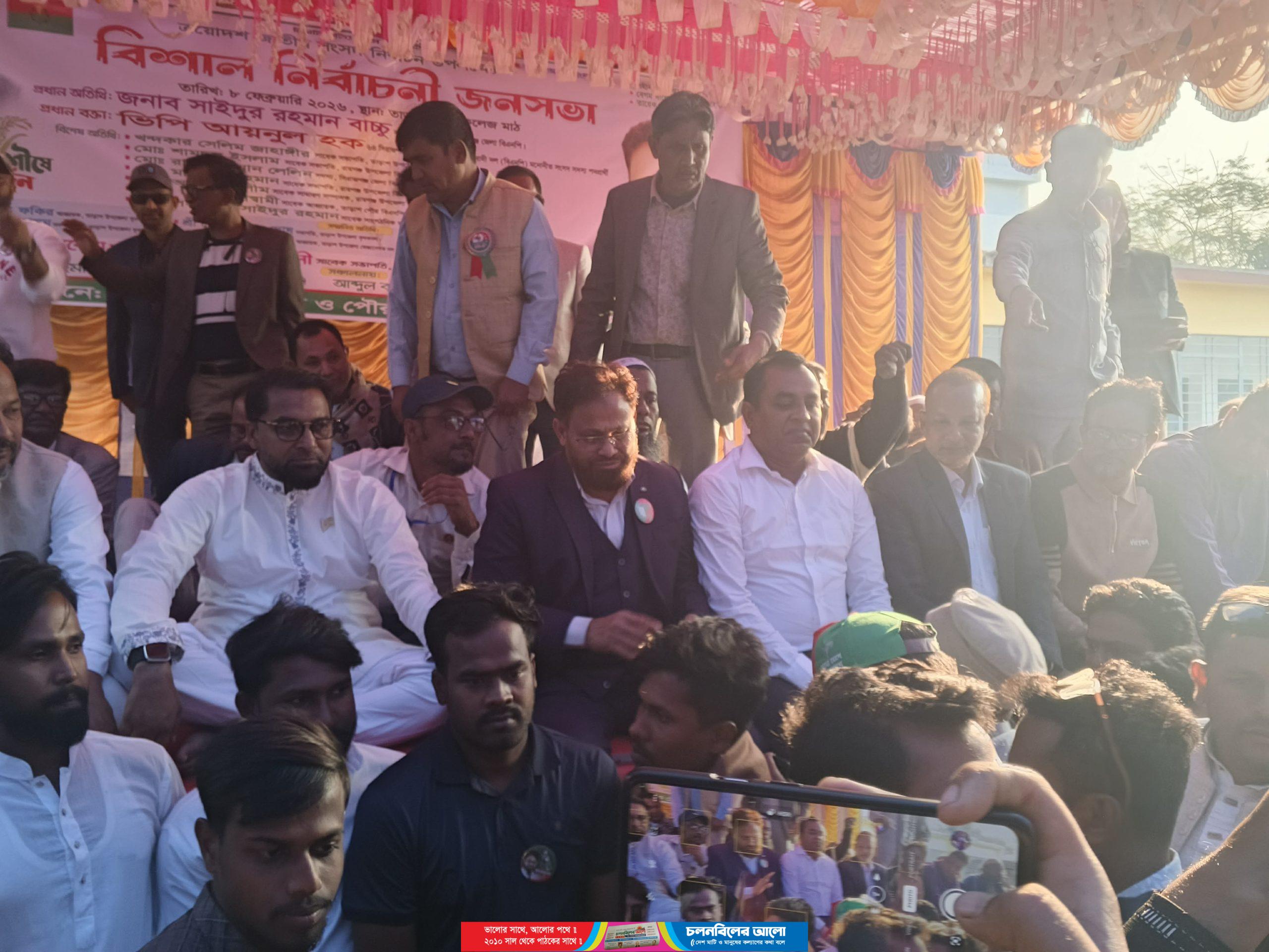 ১২ ফেব্রুয়ারির ত্রয়োদশ জাতীয় সংসদ নির্বাচনকে সামনে রেখে সিরাজগঞ্জ-৩ আসনে বিএনপি মনোনীত প্রার্থী ভিপি আয়নুল হকের পক্ষে ধানের শীষ প্রতীকের প্রচারণায় তাড়াশ উপজেলা বিএনপির আয়োজনে নির্বাচনী জনসভা অনুষ্ঠিত হয়েছে। আজ রবিবার বিকেলে তাড়াশ বিশ্ববিদ্যালয় কলেজ মাঠে আয়োজিত এ জনসভাটি জনসমুদ্রে রুপ নেয়। বিভিন্ন ইউনিয়ন ও ওয়ার্ড থেকে মিছিল নিয়ে নেতাকর্মী ও সমর্থকরা মাঠে এসে জড়ো হন।স্লোগান,ব্যানার-ফেস্টুন ও ধানের শীষের প্রতীকে মাঠজুড়ে সৃষ্টি হয় উৎসবমুখর পরিবেশ।
