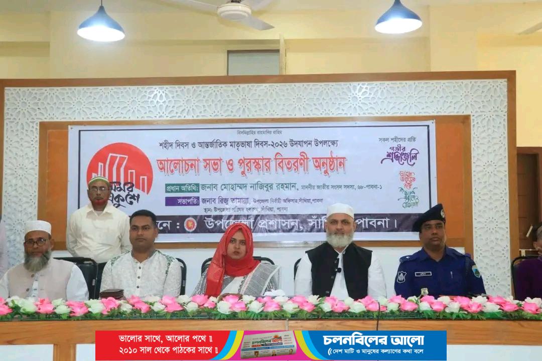 পাবনার সাঁথিয়া উপজেলা-এ উপজেলা প্রশাসনের উদ্যোগে যথাযোগ্য মর্যাদায় শহীদ দিবস ও আন্তর্জাতিক মাতৃভাষা দিবস–২০২৬ উপলক্ষে আলোচনা সভা ও দোয়া মাহফিল অনুষ্ঠিত হয়েছে।