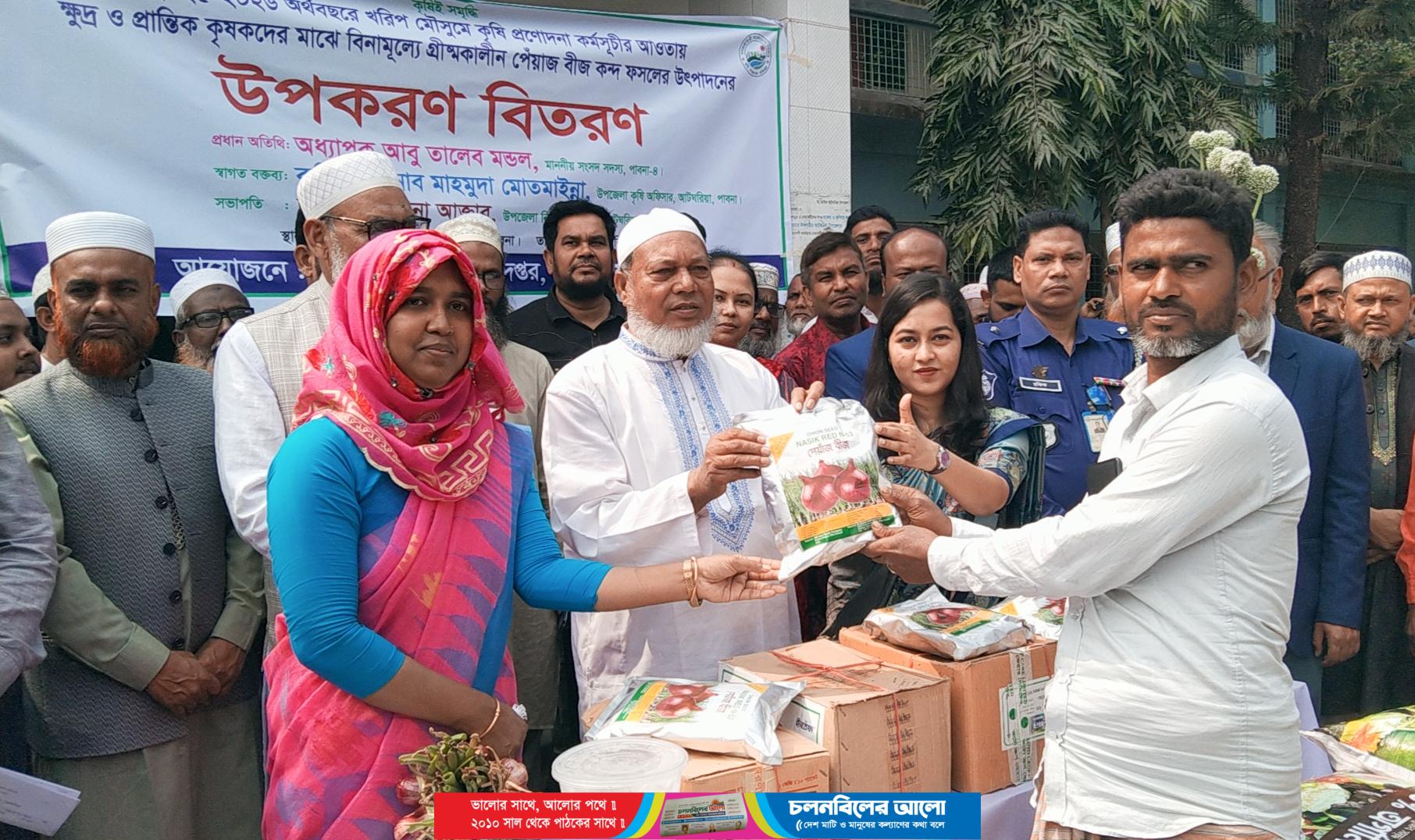 উক্ত বিতরণ অনুষ্ঠানে প্রধান অতিথি হিসেবে উপস্থিত থেকে ক্ষুদ্র ও প্রান্তিক কৃষকদের মাঝে বিনামূল্যে গ্রীষ্মকালিন পেয়াজ বীজ বিতরণ করেন পাবনা-৪ আসন(আটঘরিয়া-ঈশ্বরদী)এমপি অধ্যাপক আবু তালেব মন্ডল। সভাপতিত্ব করেন উপজেলা নির্বাহী অফিসার সভাপতি ফারজানা আক্তার। স্বাগত বক্তব্য রাখেন উপজেলা কৃষি অফিসার মাহমুদা মোতমাইন্না।