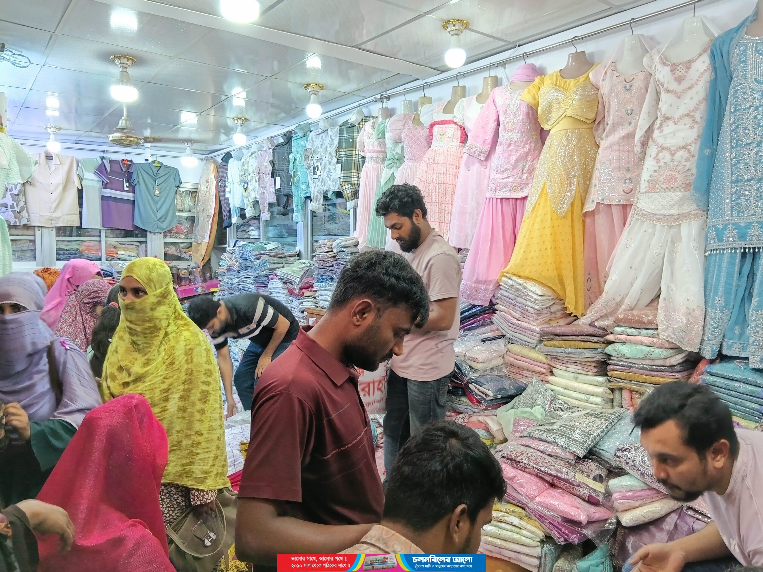 অনেক নারী ক্রেতা পছন্দের পোশাক তৈরি করার জন্য ছিট কাপড়ের দোকানগুলোতেও ভীড় করছেন।তবে পোশাকের দাম কিছুটা বেড়ে যাওয়ায় নিম্ন ও মধ্যবিত্ত ক্রেতারা কিছুটা চাপে পড়েছেন।বড় শপিংমলে না গেলেও অনেকে ফুটপাত বা অস্থায়ী দোকান থেকে পরিবারের সদস্যদের জন্য সাধ্যমতো কেনাকাটা করছেন।