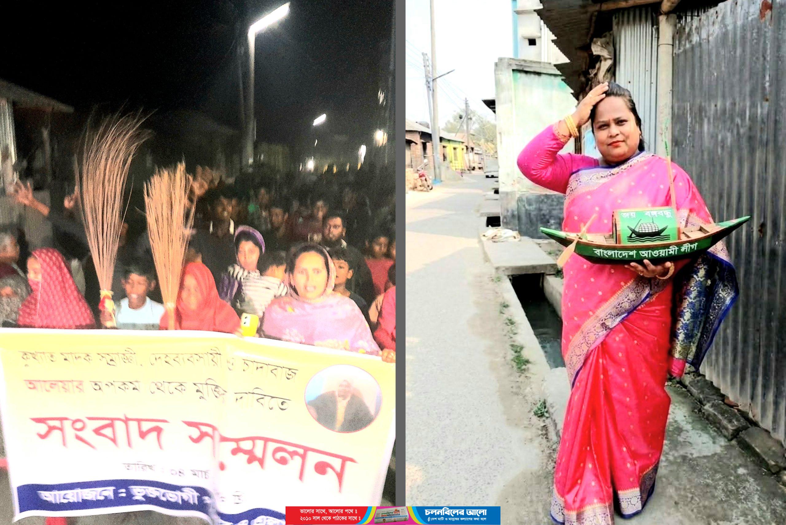 পাবনার ঈশ্বরদীতে মাদক ব্যবসায়ী, চাঁদাবাজি,খাস-জমি দখল, দেহ ব্যবসায়ী, সুদখোর “বস্তিপাড়ার অন্ধকারের রানী” নামে পরিচিত মুখ আলেয়া বেগমের (৩৬) চাঁদাবাজির বিরুদ্ধে পুলিশ পদক্ষেপ না নেওয়ায় বিপাকে পড়েছেন অভিযোগকারীর ৫ ভুক্তভোগী পরিবারের সদস্যরা। মঙ্গলবার (১০ মার্চ) পৌর শহরের পূর্ব নুর-মহল্লার বস্তিপাড়া এলাকা ঘুরে এসব তথ্য পাওয়া গেছে। গরুর খামারি ব্যবসায়ী মোঃ আসাদুল ইসলাম বলেন, আলেয়া বেগমের বিরুদ্ধে থানায় অভিযোগ দায়ের করে এখন নিজেদেরকেই নিরাপত্তাহীনতায় পালিয়ে থাকতে হচ্ছে। ভুক্তভোগী পরিবারগুলো হলেন, বস্তিপাড়া এলাকার মো. কাজল হোসেন, আসাদুল ইসলাম ওরফে তরমুজ আসাদুল, মো. হেলালের স্ত্রী মোছা. নিপা খাতুন, দীপা রাণী, মোঃ আসাদুল ইসলাম।। থানায় দায়ের করা অভিযোগ ও এলাকাবাসীর সুত্রে জানা যায়, পতিত আওয়ামীলীগ সরকারের শাসন আমলে ১৭ বছর উপজেলার পৌর শহরের পূর্ব নুর-মহল্লার বস্তিপাড়ায় যুব মহিলালীগের নেত্রী বর্তমান যুব মহিলা দলের সভানেত্রী হিসেবে পরিচিত মুখ মোছাঃ আলেয়া বেগম। রিক্সা চালক জাহাঙ্গীর আলম বলেন, দীর্ঘদিন এই আলেয়া বেগম নারী পাচার, দেহ ব্যবসা সহ চাঁদাবাজি, মাদক ব্যবসা এবং অসামাজিক কার্যকলাপ চালিয়ে আসছেন। ৫ জুলাইয়ের পর থেকে আলেয়া বেগম খোষ পাল্টিয়ে পৌর যুব মহিলা দলের নেত্রী হিসেবে স্থানীয় বিএনপির কতিপয় নেতাদের ছত্রছায়ায় অপরাধমুলক কর্মকান্ড চালিয়ে যাচ্ছেন। তাঁর এসব অপকর্ম তুলে ধরে একটি সরকার নিবন্ধিত পত্রিকায় নিউজ ছাপা হলে আলেয়া বেগমের নেতৃত্বে তাঁর সন্ত্রাসী বাহিনী সেই পত্রিকার প্রতিনিধি মো. মুশফিকুর রহমান মিশন নামে এক স্থানীয় সাংবাদিককে কুপিয়ে গুরুতর জখম করারও অভিযোগ রয়েছে এই আলেয়া বেগমের বিরুদ্ধে।