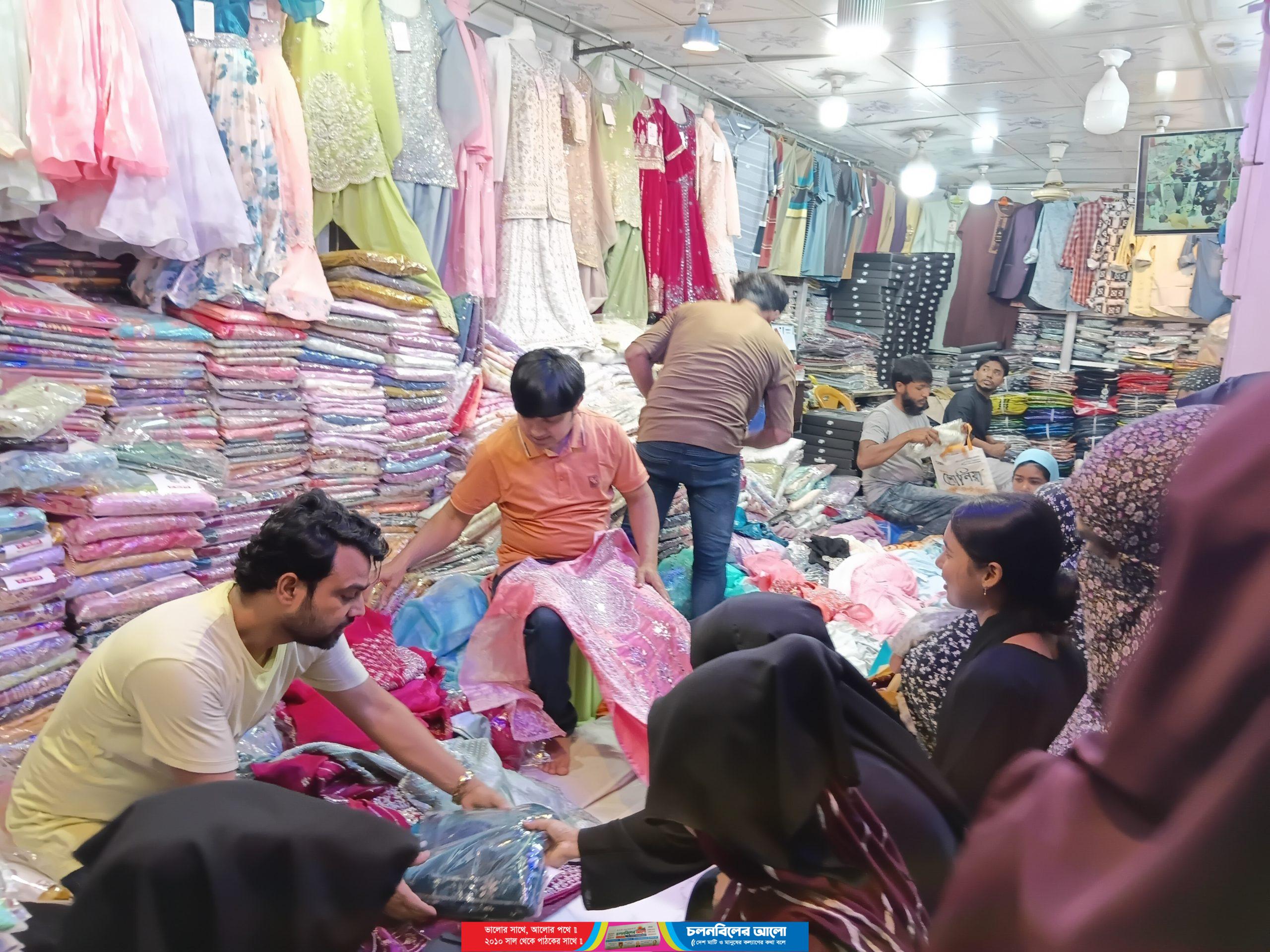 অনেক নারী ক্রেতা পছন্দের পোশাক তৈরি করার জন্য ছিট কাপড়ের দোকানগুলোতেও ভীড় করছেন।তবে পোশাকের দাম কিছুটা বেড়ে যাওয়ায় নিম্ন ও মধ্যবিত্ত ক্রেতারা কিছুটা চাপে পড়েছেন।বড় শপিংমলে না গেলেও অনেকে ফুটপাত বা অস্থায়ী দোকান থেকে পরিবারের সদস্যদের জন্য সাধ্যমতো কেনাকাটা করছেন।